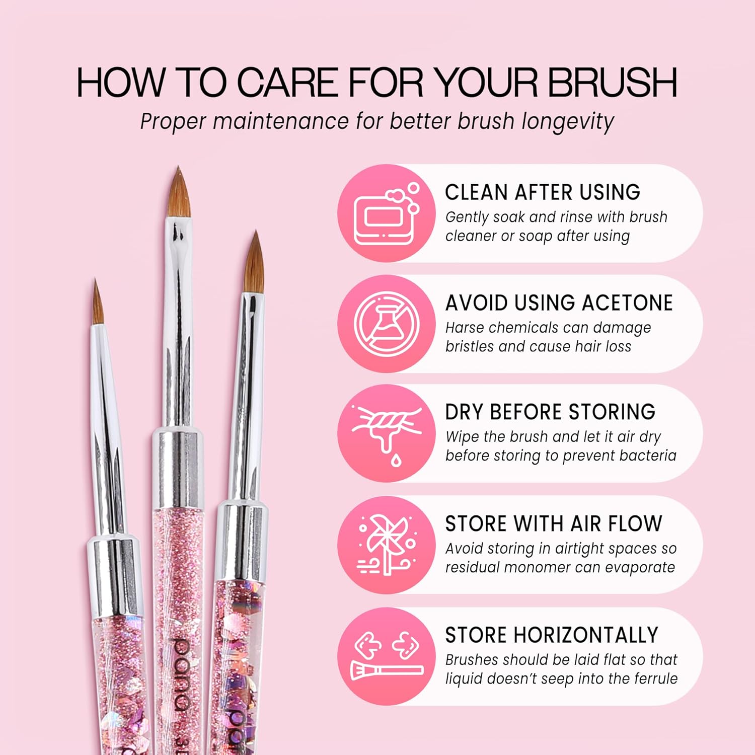 - PANA professional 3D Nail Art brush has a very smooth finish, and it lasts longer than other normal brushes. Apply acrylic products easily, smoothly, and consistently. The more often this brush is used, the smoother effect it will have. Be sure to follow proper brush care tips to extend the life of your brush.