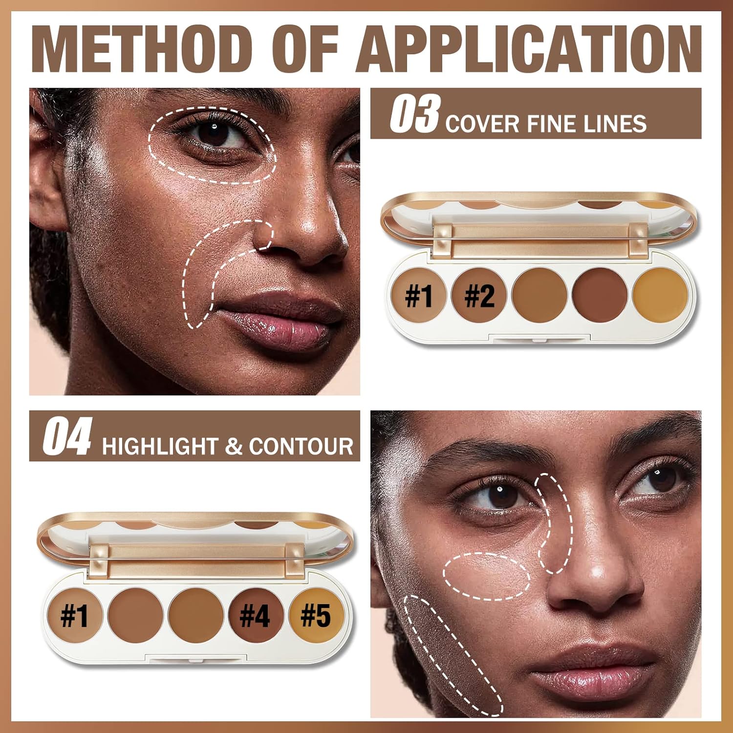 - MULTI-FUNCTION: Layer, blend, and define your facial features with these 5 creamy shades. The light colors balance the skin tone, and the medium shades are perfect for under-eye areas and blemishes. You can also mix them together to build a 3D makeup effect.