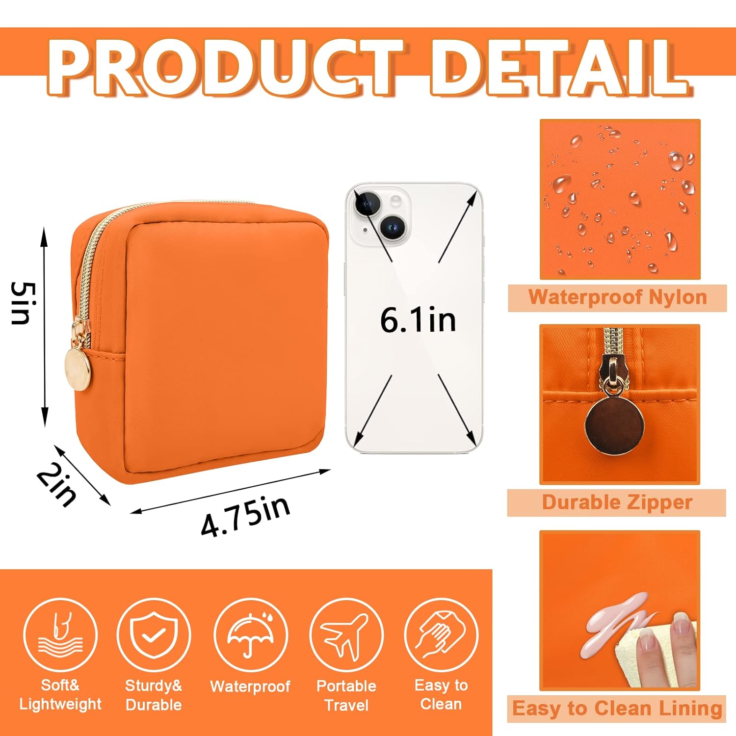 Mini Makeup Pouch for Purse, Small Cosmetic Bag Pouch Nylon Travel Toiletry Organizers for Women Girls, Cute Zipper Pouch Coin Purse Preppy Storage Bag for School Work(Mini-Peach)