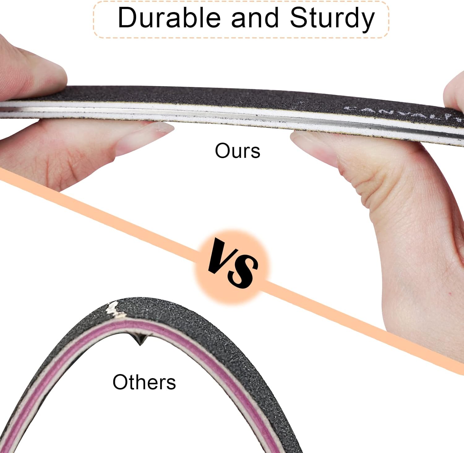 - 40 PCS Peel and Stick Nail Files: Perfect nail file size: 7.1x 0.59 x 0.2 inches, 80 grit, half-moon shaped, disposable nail files for easy to grip and comfortable to use. These emery boards just stick on the metal base to use, it can be pasted on both sides