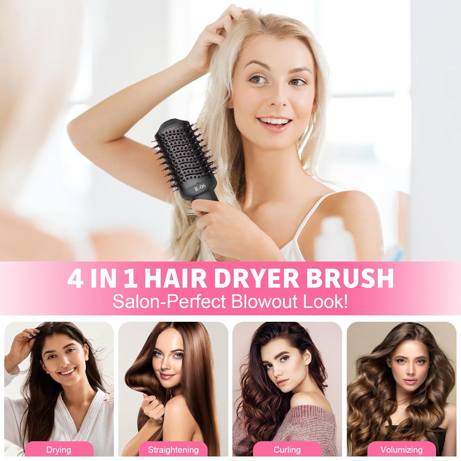- 【4 IN 1 Drying & Smoothing & Volumizing & styling Hair】: The unique oval brush design smoothens the hair. Made with nylon pins and tufted bristles, it provides detangling, enhanced volume and better control.Different from traditional hair dryers, this volumizer can be positioned closer to the scalp to achieve maximum lift. With 360° surrounding wind and a 50% larger drying area, it allows you to save at least half the time needed for drying and styling your hair!!