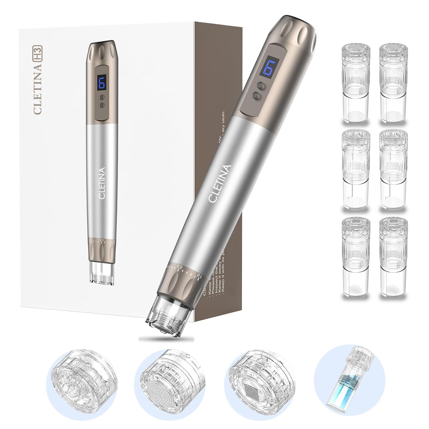 Micronee.dling Pen H3 Micronee.dle Pen - Adjustable Serum Applicator - Micronee.dle for Face Home Use - 2PCS H12 + 2PCS Nano-HR + 2PCS Nano-H
