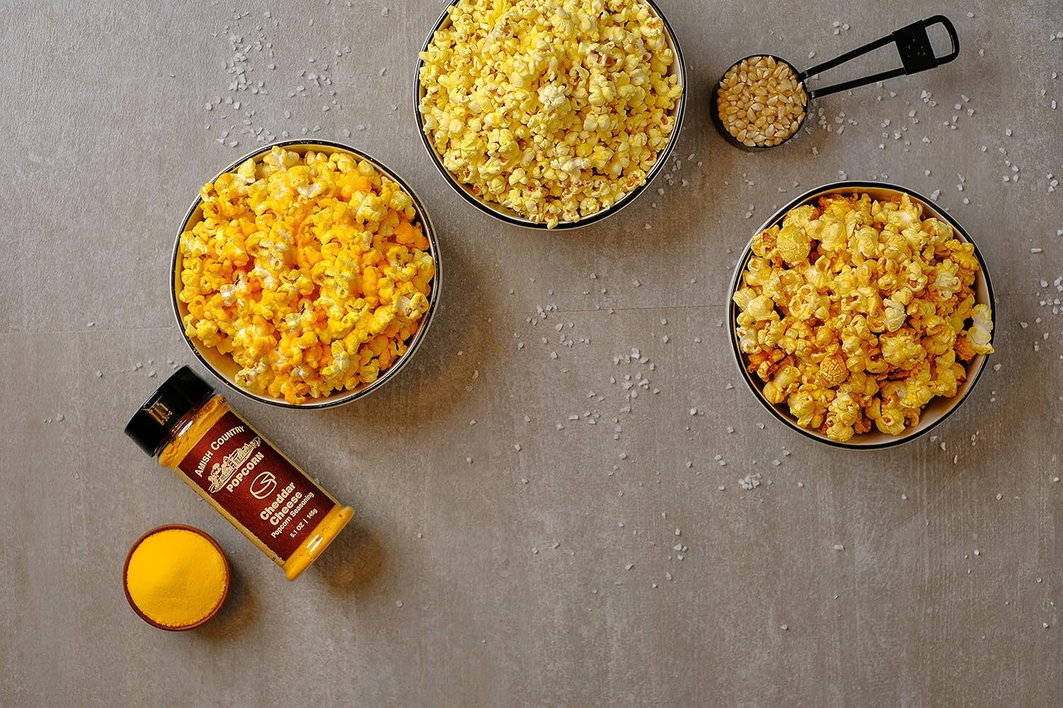 - 12 PACK SEASONING SAMPLER - Variety is the spice of life. Try all of our most popular seasonings on your Amish Country Popcorn. Each sampler includes Jalapeno Cheddar, Sea Salt & Caramel, Cinnamon Bun, Maple Bacon BBQ, Dill Pickle, Buffalo, Sour Cream & Onion, Cheddar, Hickory Smoke BBQ, Ranch, White Cheddar and Garlic Parmesan. Try them alone or combine them, the possibilities are endless.