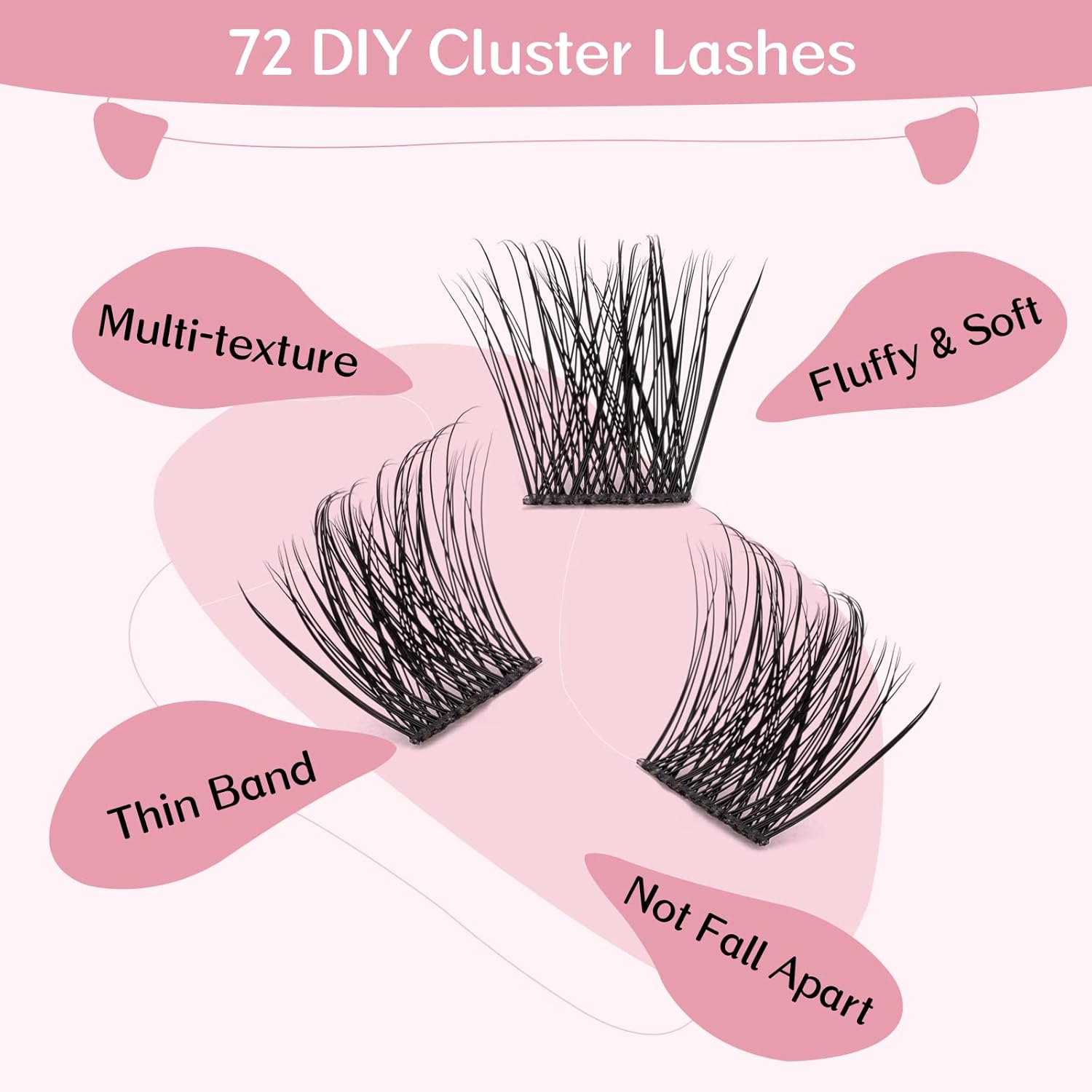 - Bring salon to your home: Pro LashBeauty Lash clusters are easy to apply. Divided individual Lashes into sections, easy to pick up and apply by yourself. You can apply the eyelashes with different lengths and styles according to different occasion. You will become a master of DIY lash extensions with a little practice!