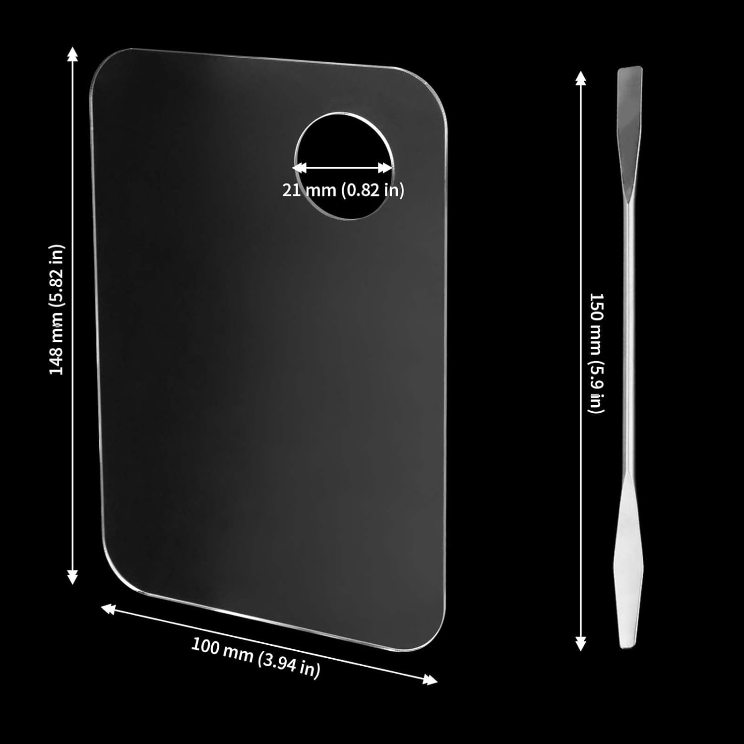 - WHAT YOU GET - You will get a total of 6 acrylic makeup palettes, each measuring 5.9 x 3.9 inches / 150 x 100 mm, with rounded corners which would not hurt your fingers. 6 color sticks are also included for easy mixing.