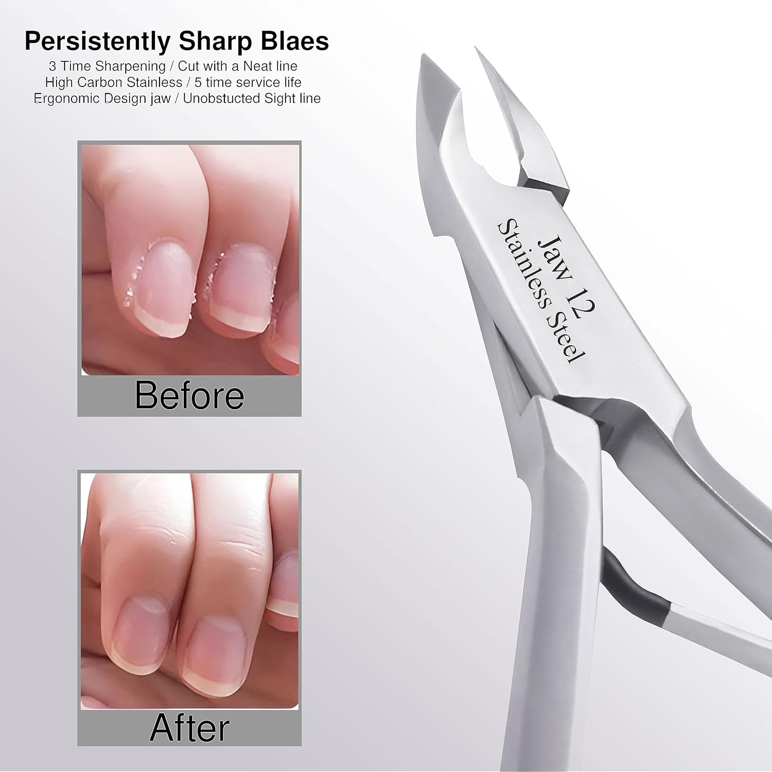 - ★ [Professional–Grade Stainless Steel Blades]: UM Supplies nail cuticle trimmers are made of a high-quality stainless material that can be sterilized without rust and corrosion and tends to the durability and longevity of the cuticle clippers. Additionally, Cuticle Nippers keep precise trimming cut whenever you use it which emphasizes the accuracy and effectiveness of stainless steel grade blades.