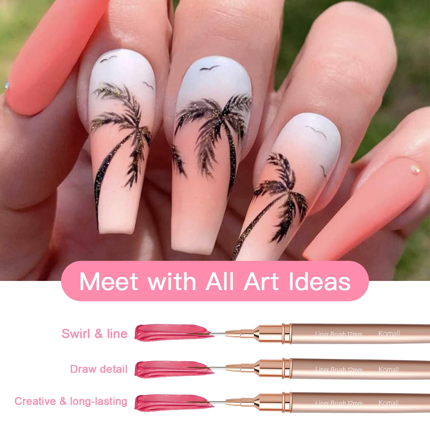 - USAGE: Our nail art liner brushes perfect for gel nail polish, acrylic paint, drawing lines & fine drawing & painting flowers and pattern design on nail tips and etc. Suitable for home use and professional nail salon.