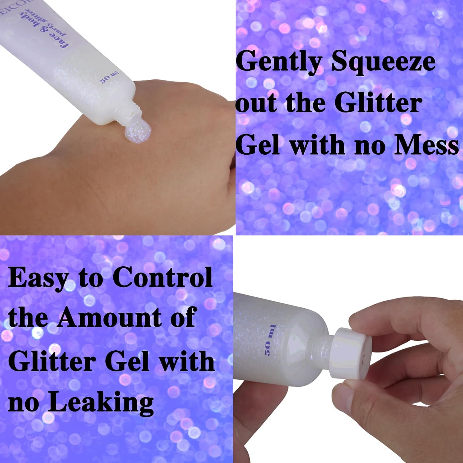 - Multiple Application:Great for dancing,festival, choir nights,clubs, parties,sporting events or other special events,providing you a shimmery look under the light.You can apply the glitter gel on more area to give amazing and sparkling makeup