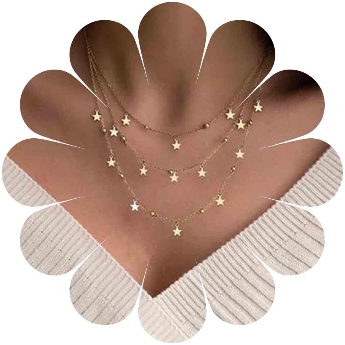 - Gold layered star chain necklace.If you have any questions about the product,we will help you solve it within 12 hours.