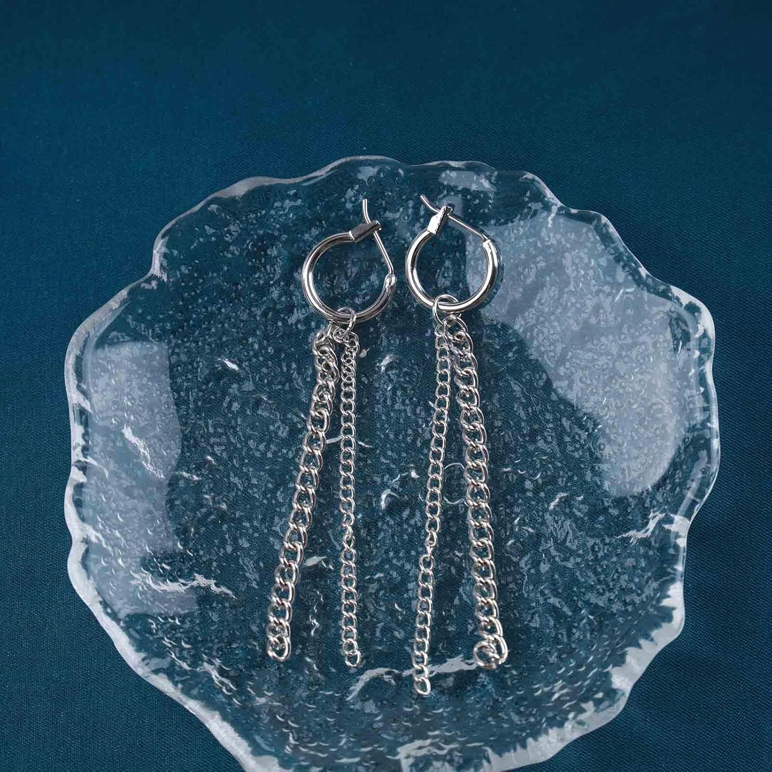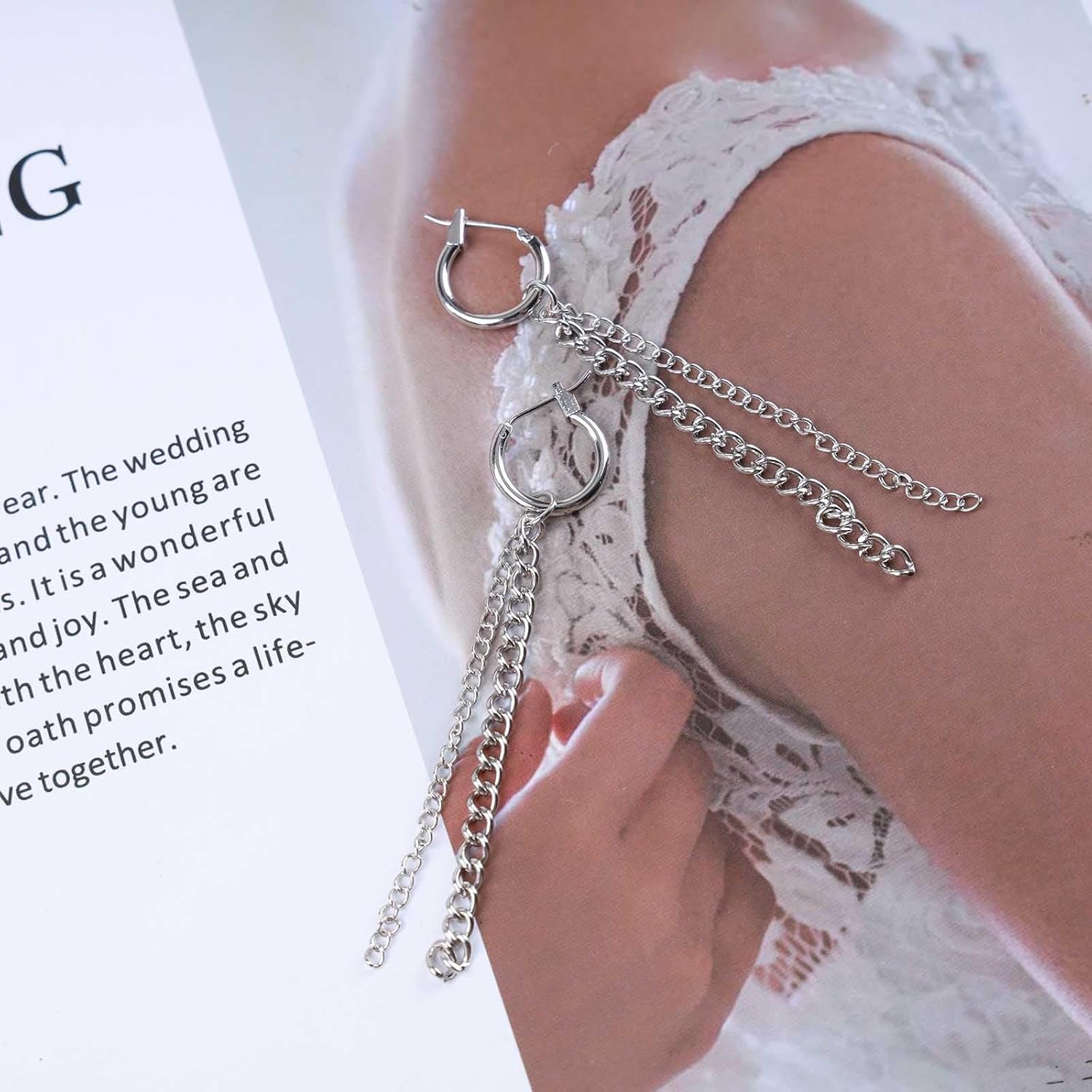 Vintage Tassel Chain Earrings Silver Fringe Chain Earrings Long Chain Dangle Earrings Punk Thick Chain Huggie Hoop Earrings Jewelry for Women