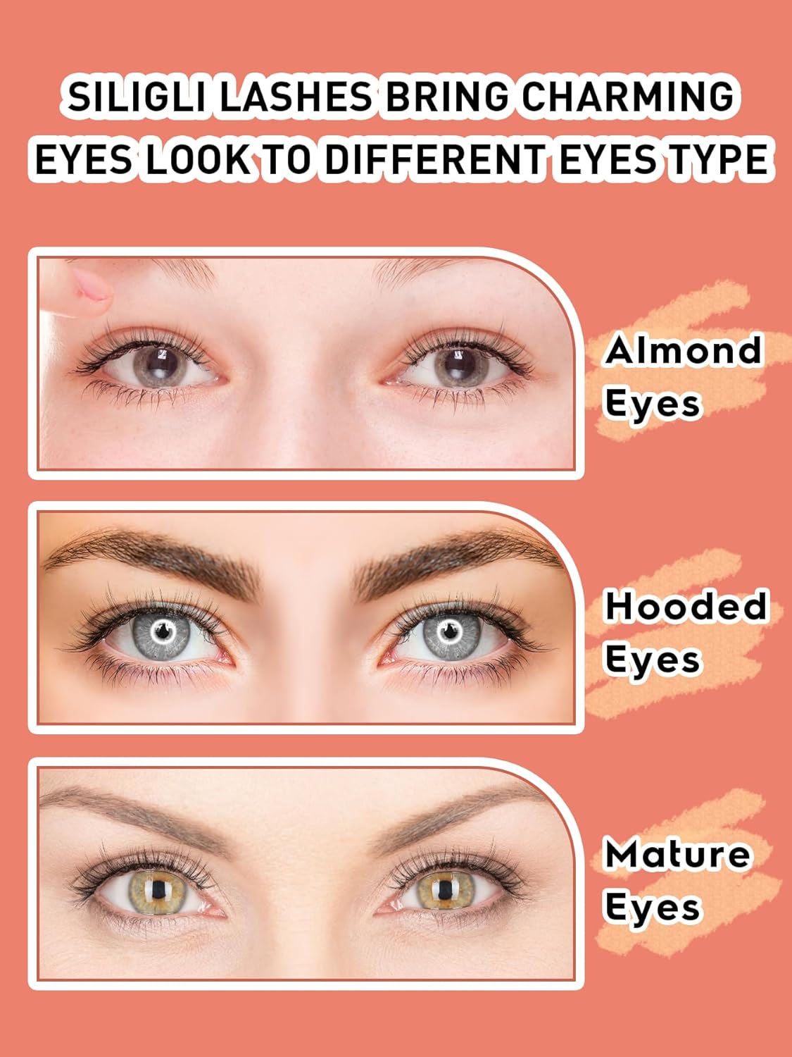 - NATURAL FALSE EYELASHES: Siligli wispy eyelashes use 0.1mm thin cotton flat band tech, seamlessly blend to your real eye lashes. Incredibly flexible, easy to bend and stay well on, beginner friendly