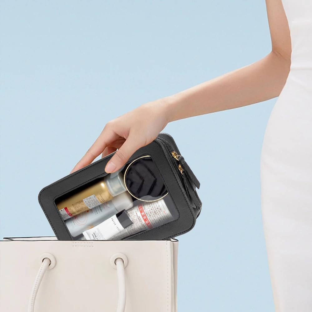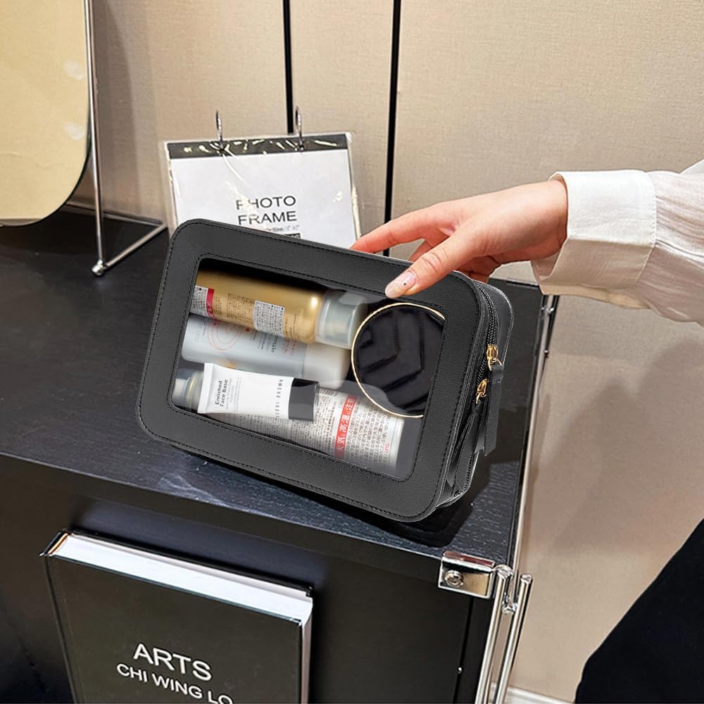 • Clear Design: Our clear toiletry bag is sleek and minimalistic look for your makeup accessories collection. And is designed with a clear PVC window,all items are clear at a glance, and you can quickly choose the cosmetics you need. Size:9.44“*6.1”*2.75“