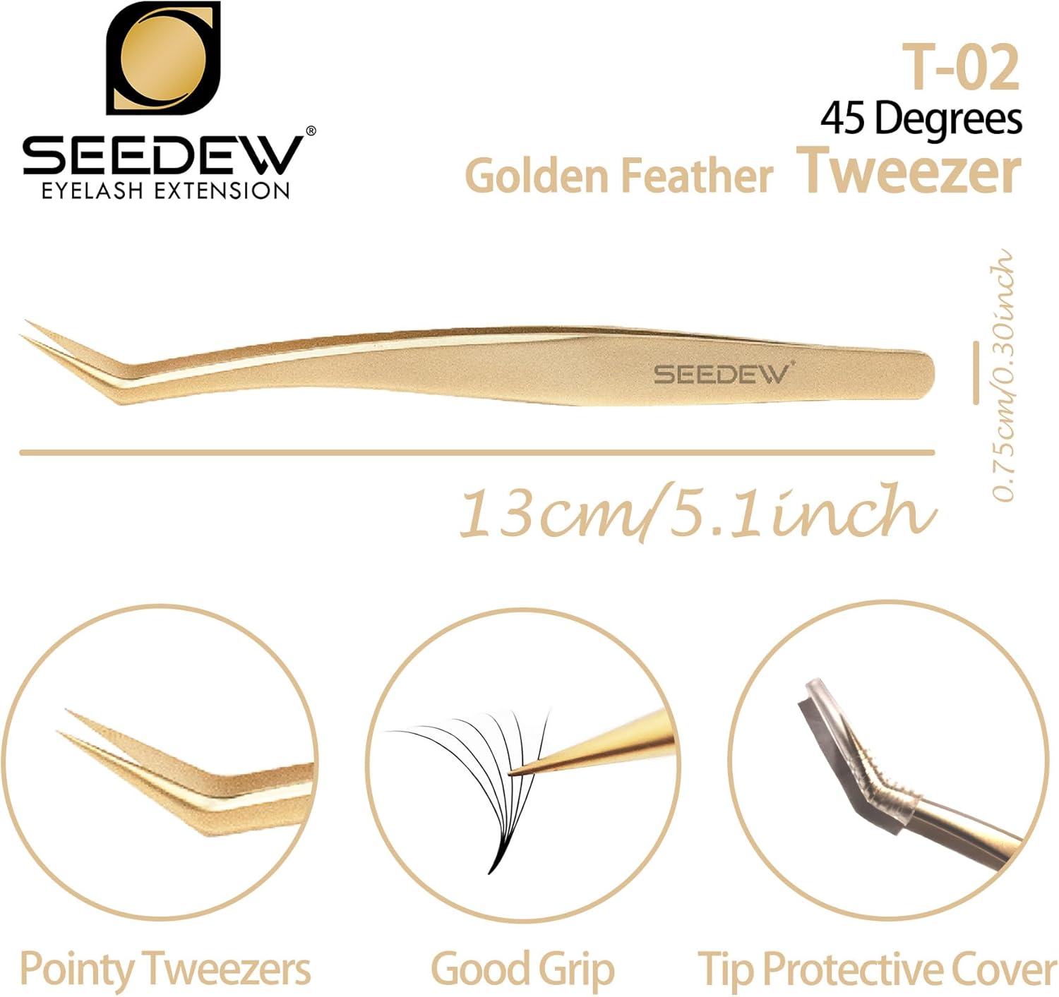 - đšăT02 Golden Feather TweezersăThe 45 degree Golden Feather Tweezers are the most popular style of tweezers that lots of eyelash artists like to use. They are mainly used for eyelashes blooming, or for picking up eyelashes for grafting.