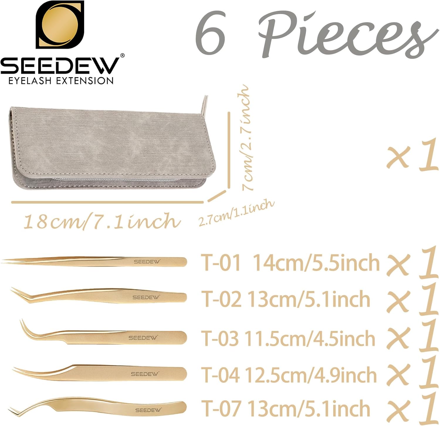 - ⭐【Premium And Classic】SEEDEW stainless steel golden tweezers have texture, smooth surface, classic and elegant style. A basic tweezer set, an unmistakable choice for eyelash artist beginners.
