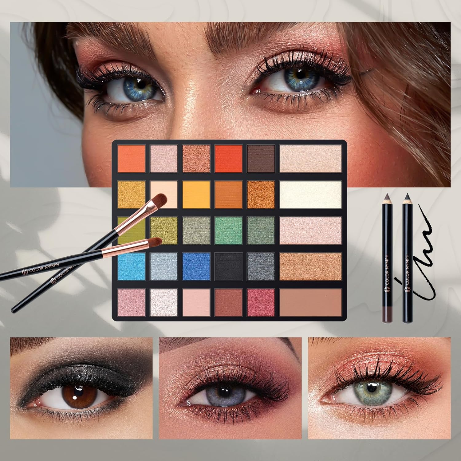 - This Color Nymph trendy makeup set includes different eye shadows, highlighters,bronzers,cosmetics blushes, lipgloss tubes, eye liner pencil, lip liner pencil, compact mirror, brushes,and powder puff.