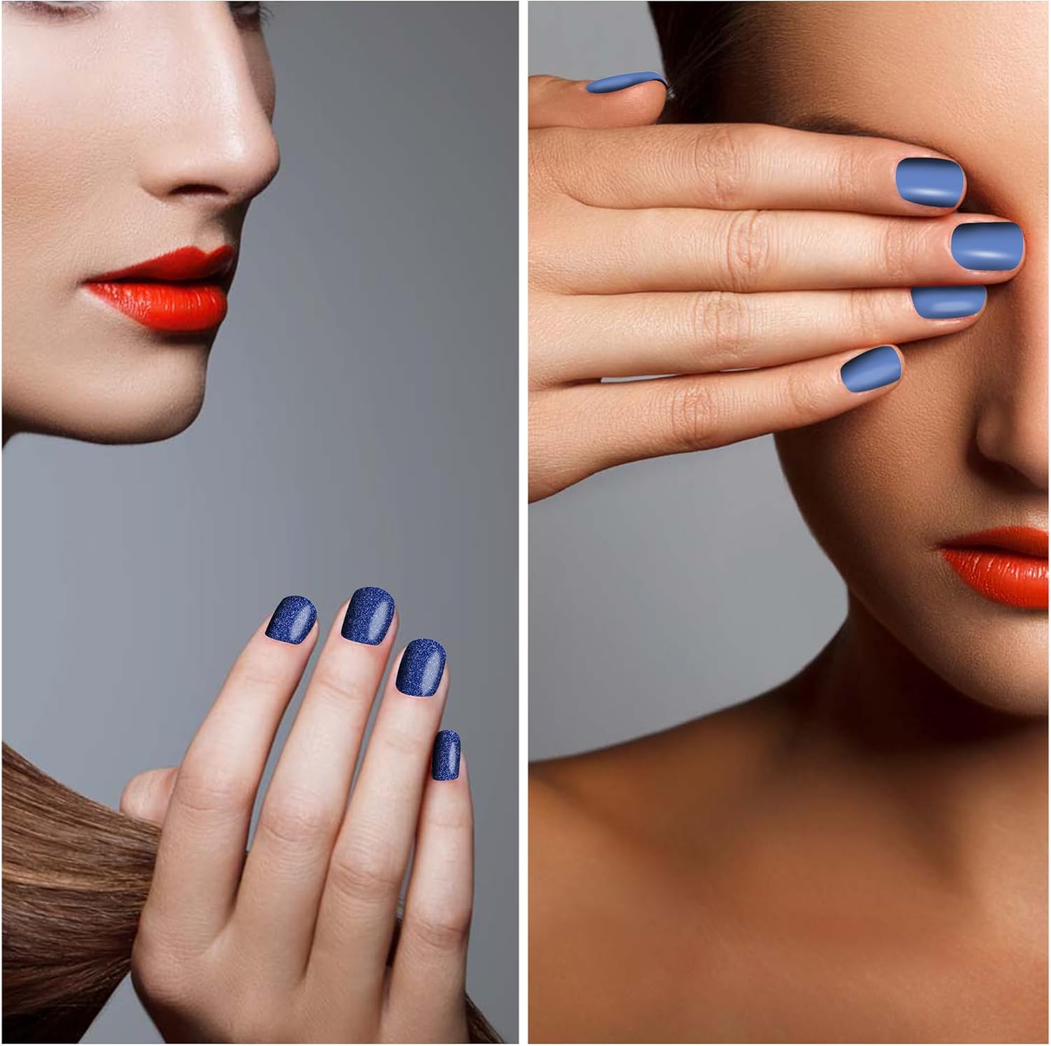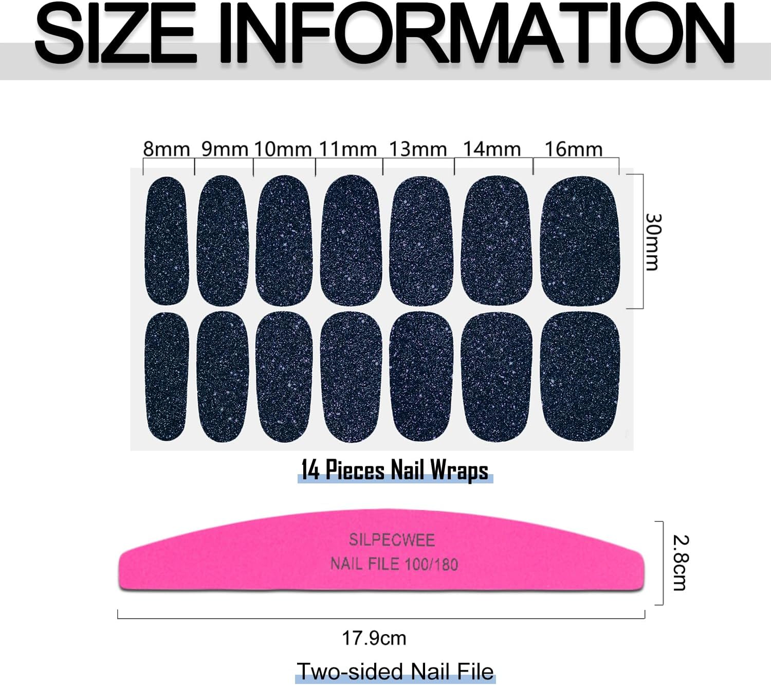- Stylish Blue Nails Design - as the most fashionable nail design, blue is one of the favorite nail styles for every woman, SILPECWEE nail strips set have glitter blue style and solid blue style, make it easy for you to pair up charming nail art design.