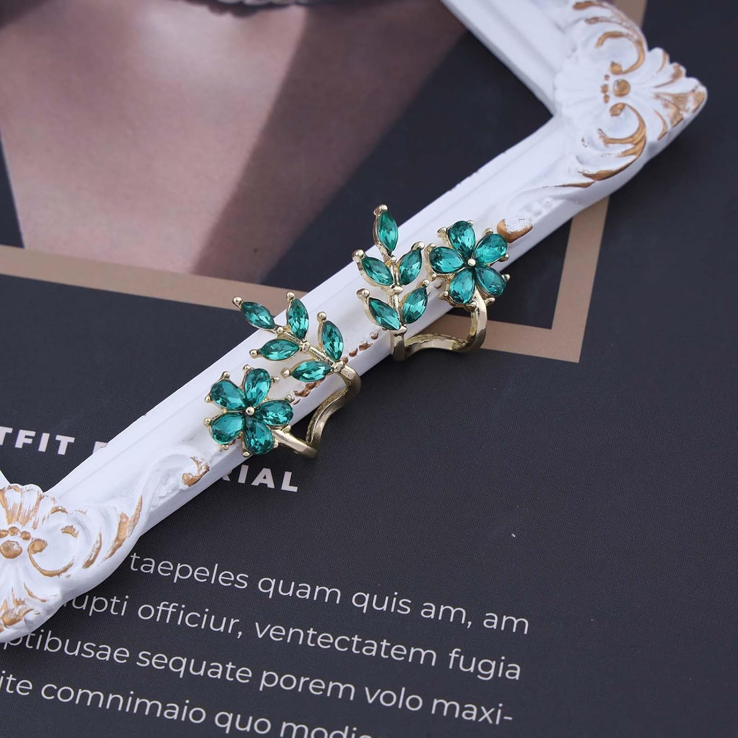 Vintage Emerald Flower Ear Cuff Earrings Green Crystal Flower Earrings Crystal Leaf Stud Earrings Emerald Leaf Earrings Jewelry for Women
