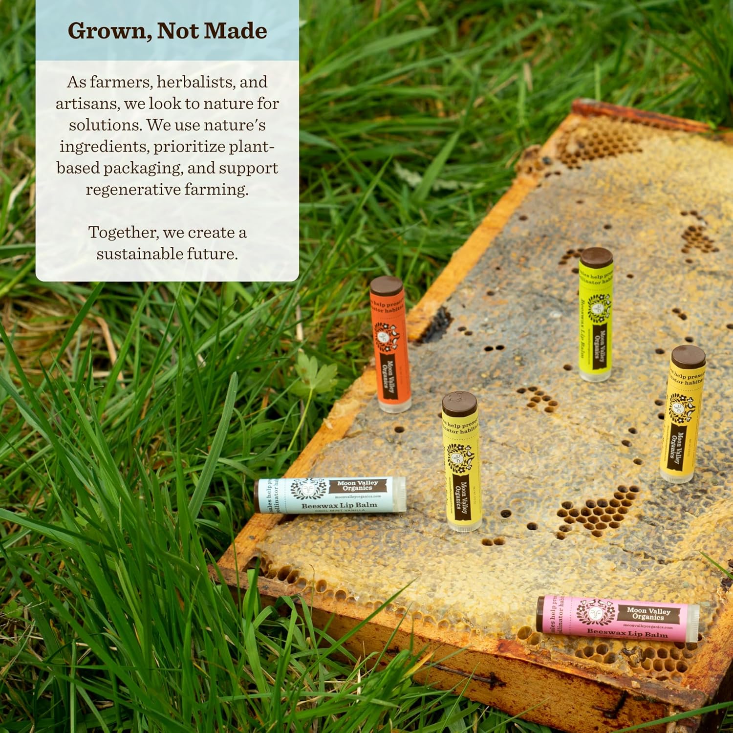 Moon Valley Organics Beeswax Lip Balm for Moisturizing Lips and Cuticles (COOL MINT VANILLA, 6-Pack)