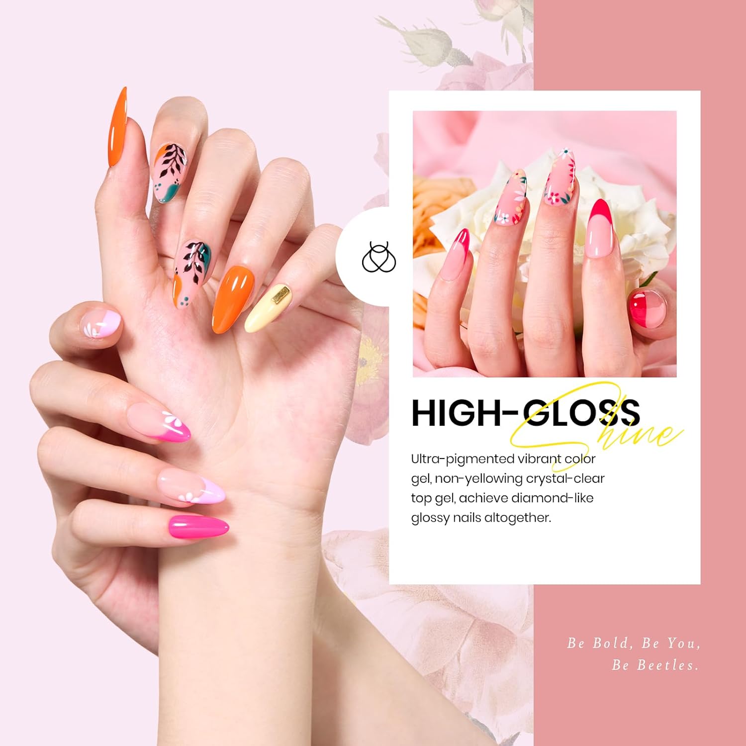 - 【Beetles All Year Nail Art Design】: Beetles 2024 All Year gel nail polish color with 36 different shades of popular and trendy colors, suitable for all seasons and daily routine life! To make it easier for you to design your fall winter manicure, we have thoughtfully included 1PCS embossed nail decals in these nail polish sets. You are free to create floral nail art.