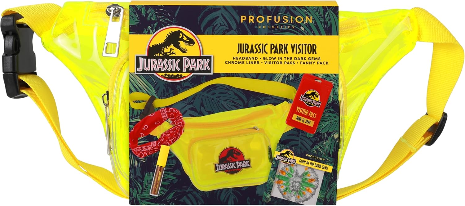 Profusion Cosmetics Jurassic Park Adventure Beauty Set - Experience the Thrills with the Jurassic Park Visitor Set - Face & Body Glow Gems, Chrome Liner, Collectors' Pass & Beauty Headband