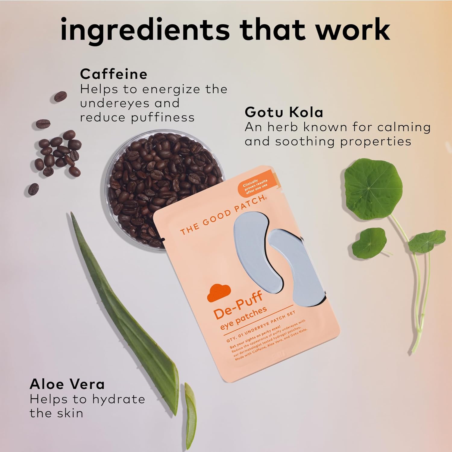 - INGREDIENTS: Made with Caffeine (helps to reduce puffiness), Aloe Vera (helps to hydrate the skin), Gotu Kola (an herb known for its calming and soothing properties), and cooling Menthyl Lactate.