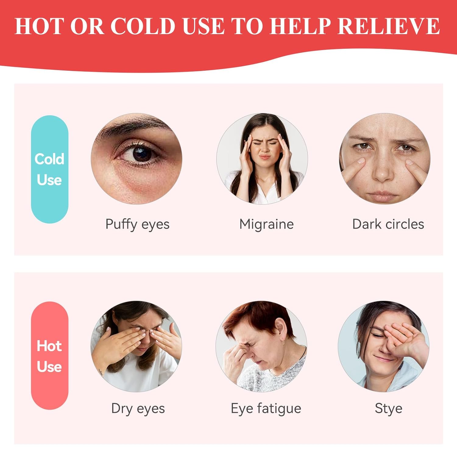 - 【Cold & Hot Compress Therapy】For cold compresses, simply place the cold eye mask in a reusable storage bag and freeze for 30 minutes, cold compress eye masks can make you feel calm and help relieve migraines and headaches. For hot compresses, simply microwave on medium-high/high power for about 20 seconds relieve fatigue, dry eyes, and dark circles.