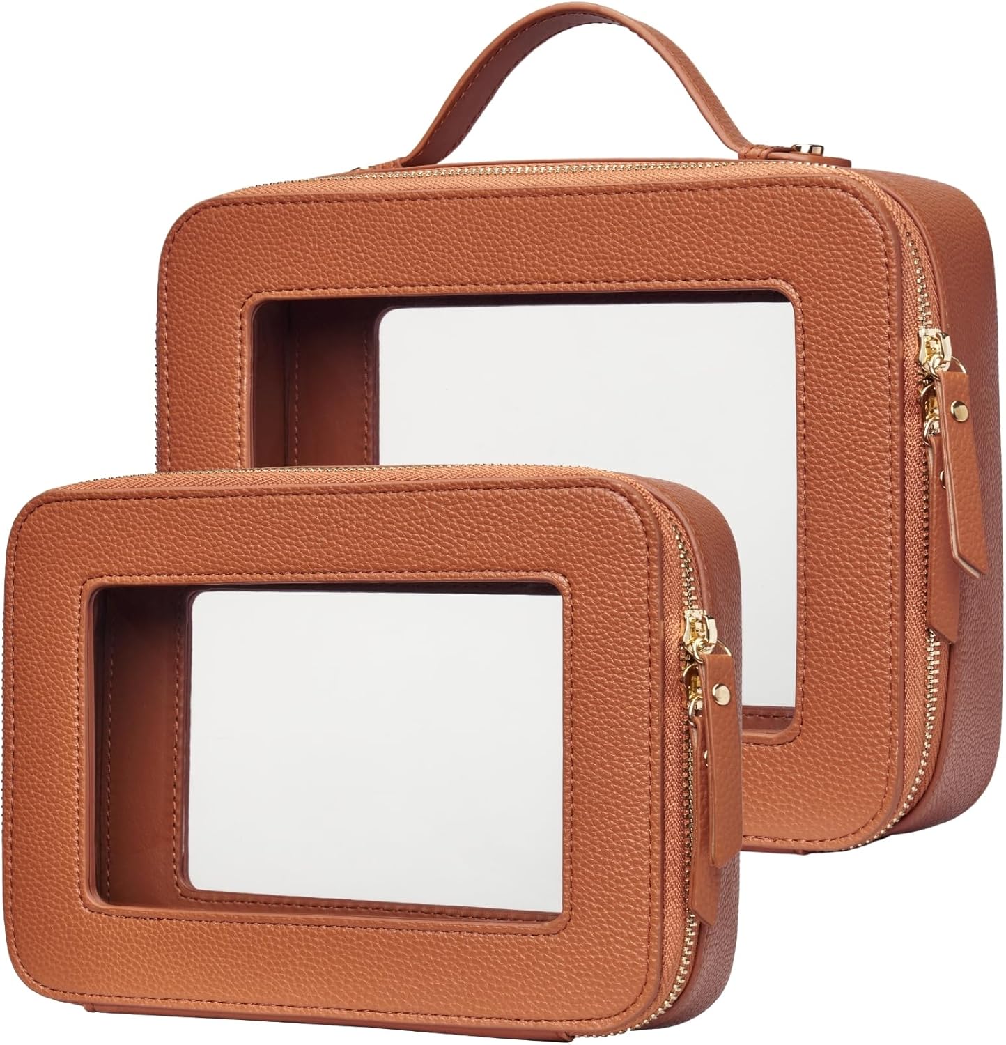 - [Two-Piece Set] β The clear bag set consists of two different sizes, specifically designed to separate makeup and skincare products effectively. The medium size measures 8.3'' x 6.1'' x 2.4'' (21cm x 15.5cm x 6cm), the large size measures 9.6'' x 7.5'' x 3.1'' (24.5cm x 19cm x 8cm).