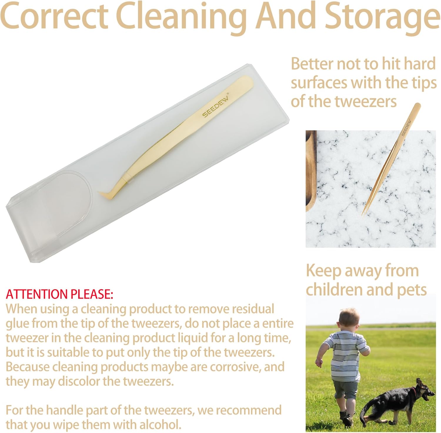 - â¤ď¸ăComfortable And CleanăSEEDEW tweezers are ergonomically designed, and the comfortable handle is suitable for long-time holding and using. Eyelash tweezers can help you reduce contact with your clients' skin and eyes, cleaner and safer.