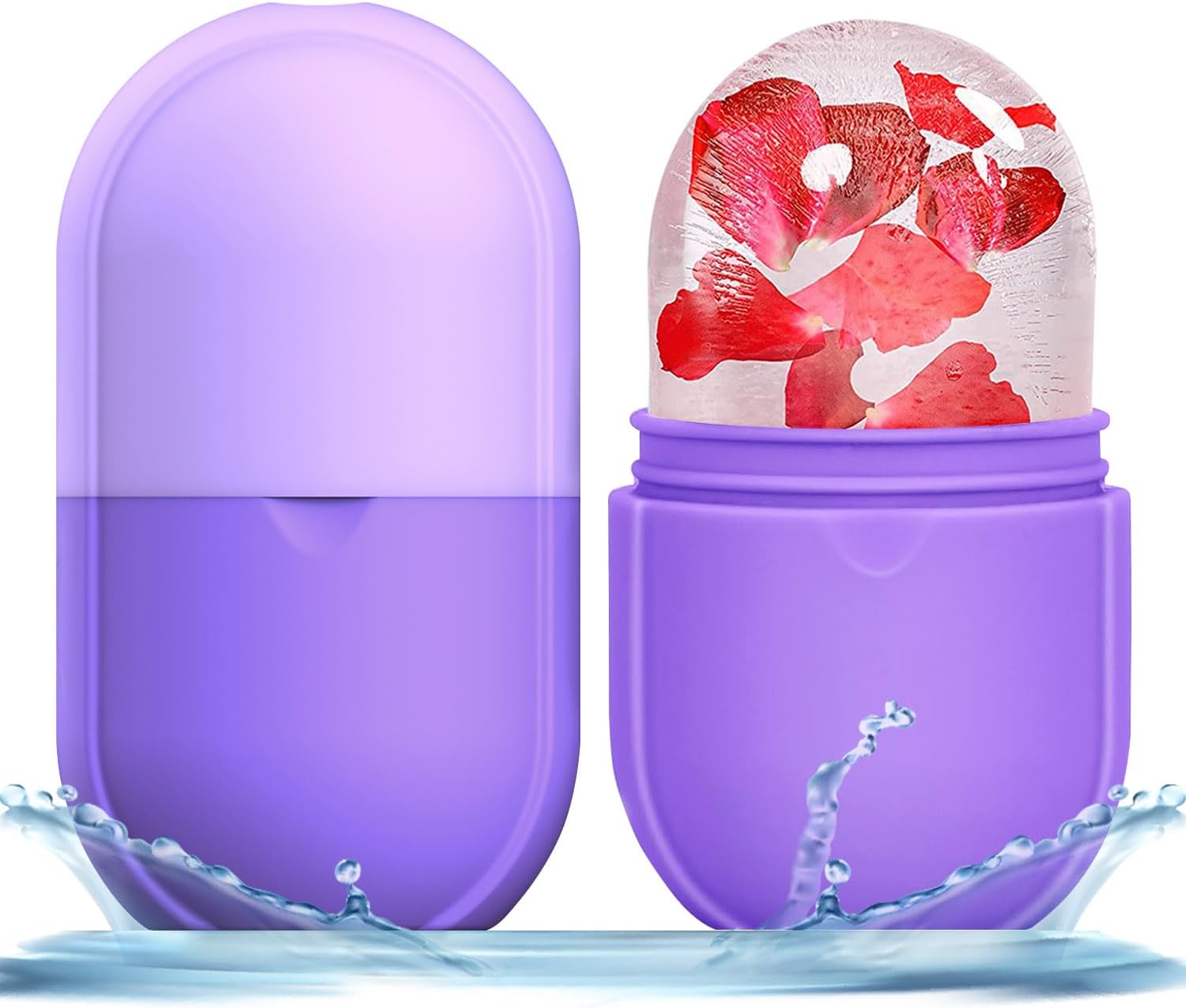 KOGITI Face Ice Roller & Mold - Beauty Facial Massage Tool for Puffiness Relief, Ice Cube Holder (New-Purple)