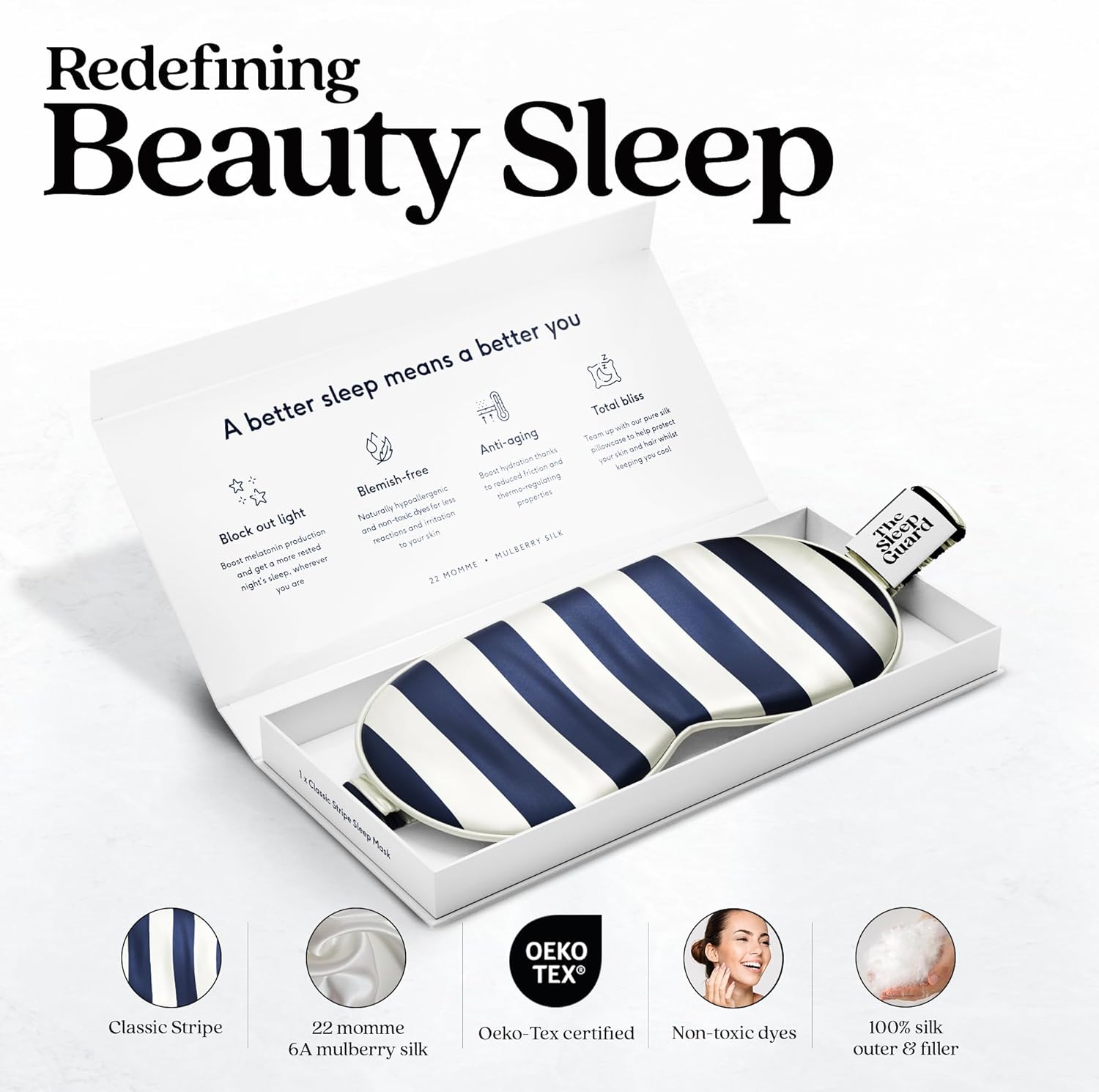 - ✅ INVEST IN YOUR SLEEP - Experience TheSleepGuard difference with our luxury sleeping masks. Crafted from the highest grade 6A Mulberry silk at 22 momme and certified by Oeko-Tex to ensure you sleep soundly. Remember, better sleep leads to a better you.
