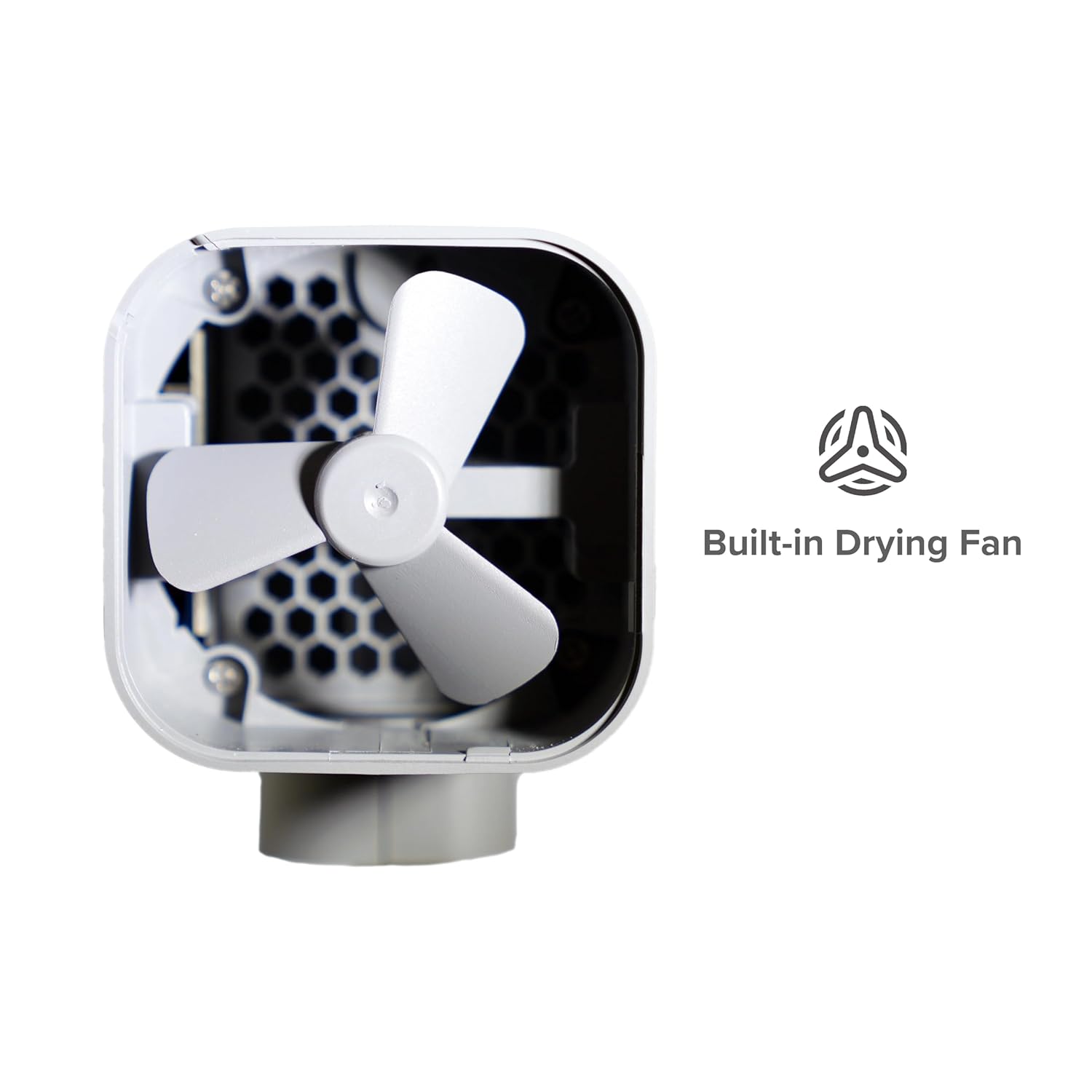 - BUILT-IN DRYING: The prolonged wetness of your toothbrush increases the risk of harboring germs. Our solution? A built-in fan that eliminates this worry.