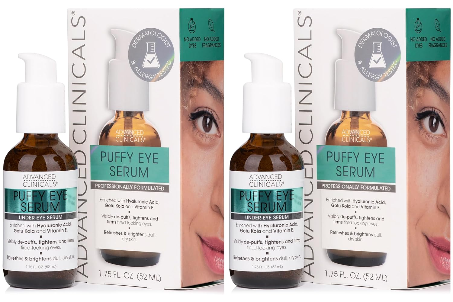 Advanced Clinicals Puffy Eyes Treatment Eye Serum Anti Aging, Brightening, & Firming Under Eye Serum With Vitamin E, Collagen, Gotu Kola, Caffeine, & Green Tea Helps Hydrate & Calm Puffiness, 2-Pack