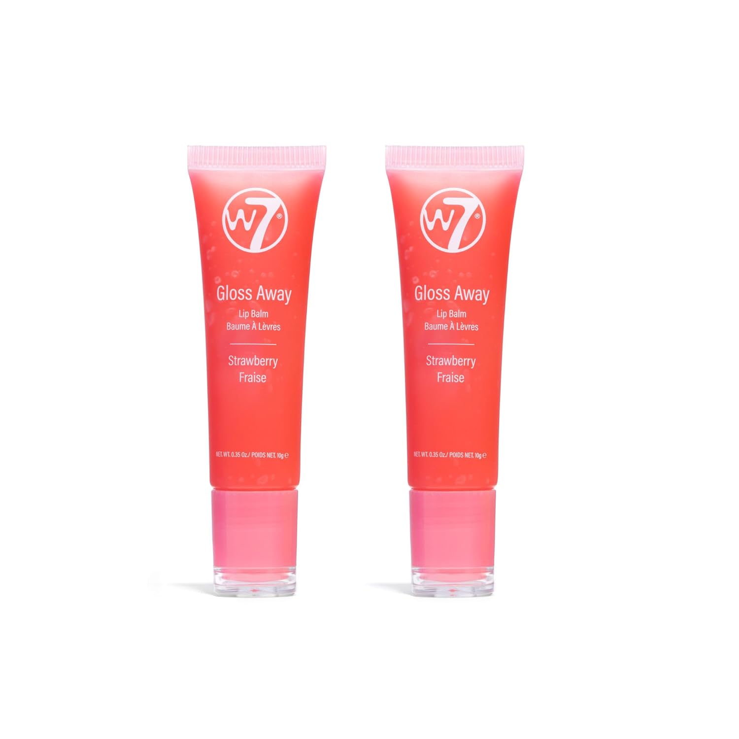 W7 Gloss Away Lip Balm - 2 Piece Set - Nourishing Lip Balm Formula With Shea Butter - Strawberry