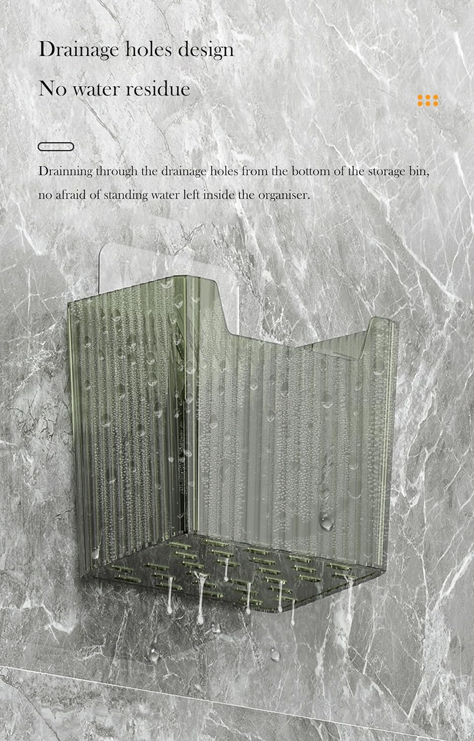 Set Of 2 Storage Organizer Bins Wall Mounted Shower Caddy, Bathroom shelves Stackable Clear Plastic Toothbrush Holder Adhesive Hanging Bin for Bathroom, Kitchen, Cabinet, Shower BPA Free Small (Green)