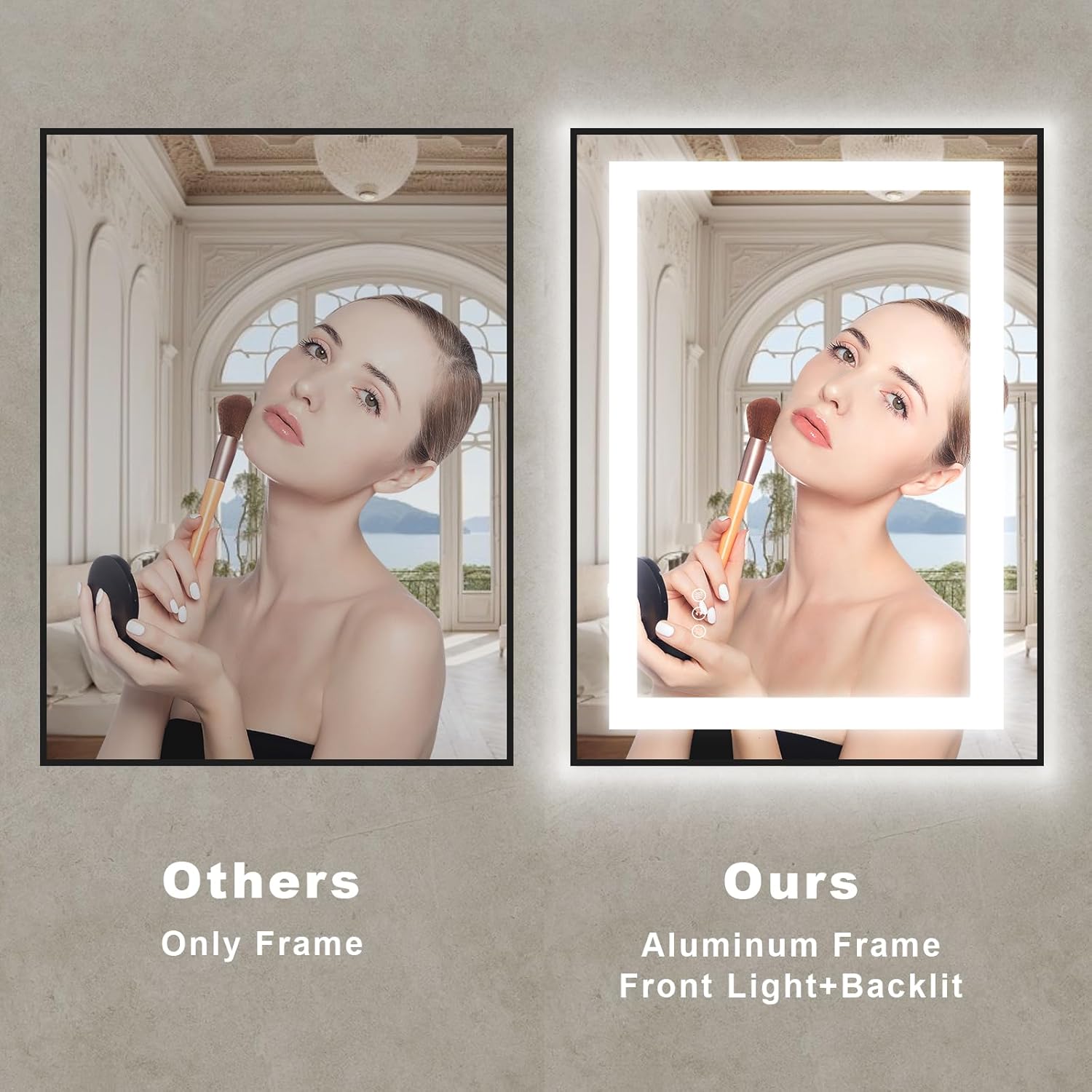 - 【Matte Black Metal Frame LED Mirror】Our led mirror for bathroom have thin and durable black metal frame that provides sufficient brightness and elegance look. It combines practicality and modern beauty, is a ideal for decorating bathroom, living room, bedroom, hair salon and hotel.
