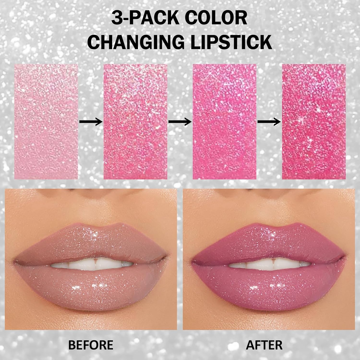 - 3-Pack Color Changing Lipstick: There are three different looking lipsticks in our color change lipstick set. As the temperature and pH are changing, it provides you with a delightful color changing effect, feeling the magic of the pink color from light to dark.
