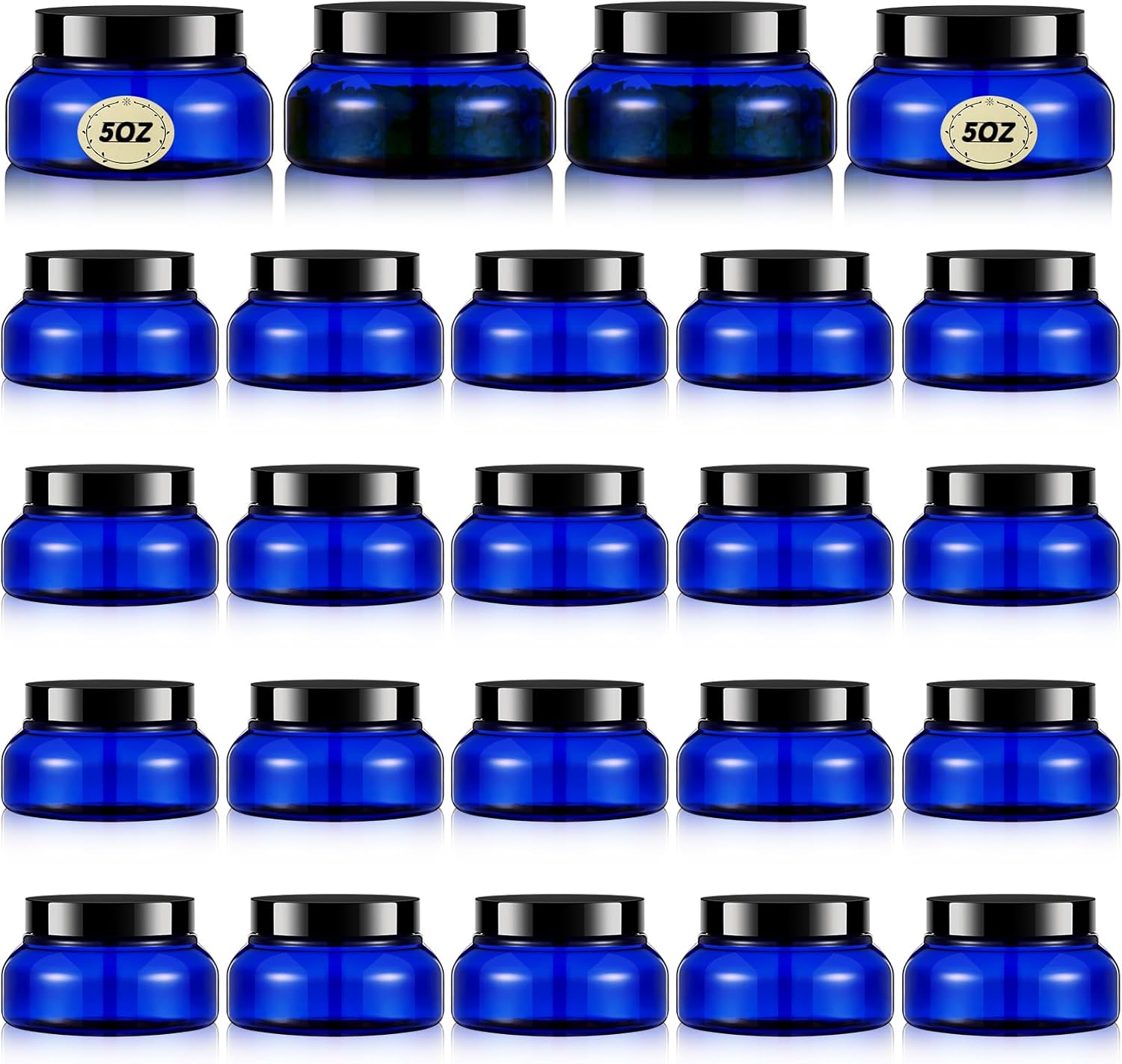 Tessco 24 Pack Plastic Jars with Lids Labels Empty Clear Plastic Jars Round Refillable Cosmetic Containers Body Butter Containers Bulk Sugar Scrub Bottle for Make Up(5 oz,Blue, Black)