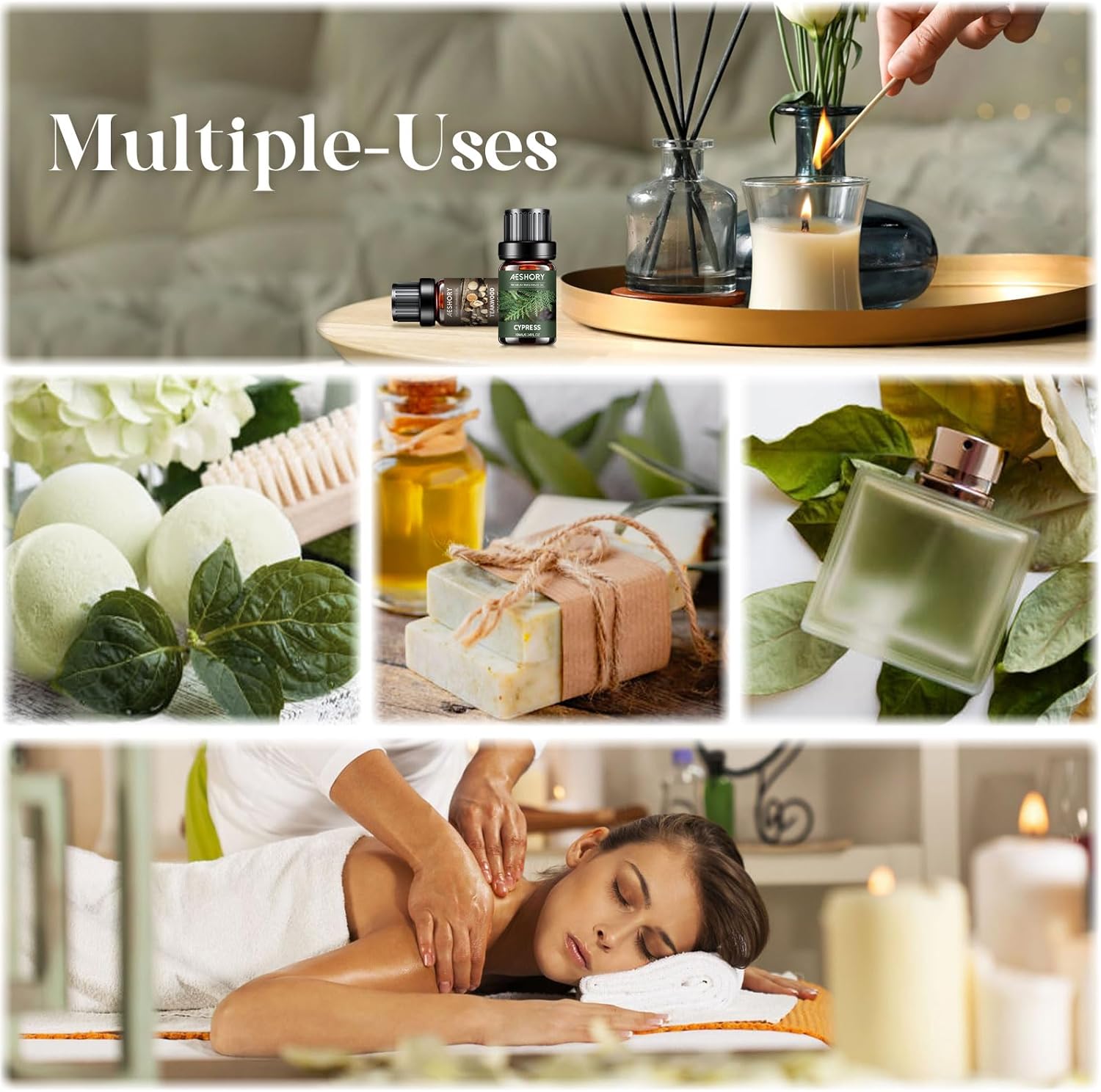 - 🌲【Multiple Uses】These essential oils can be used for aromatherapy, diffuser, massage, skin & hair care. Simply add a few drops to any diffuser and fill your entire room with that aroma, suitable for home care (large room, bedroom, living room, bathroom), office, outdoors, campground, yoga room and spa for a whole day relaxation.