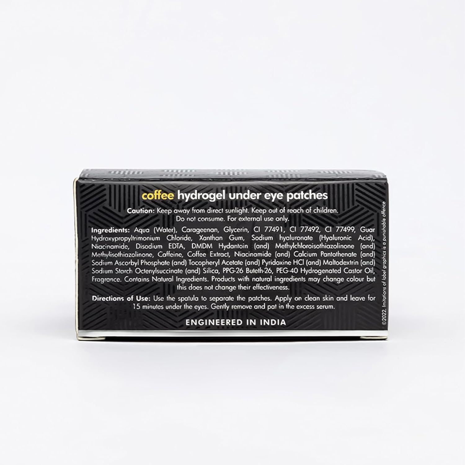 - CAFFEINE AND COFFEE FOR YOUR SKIN: Coffee extract present in the eye patches reduces under-eye puffiness and dark circles. Caffeine present in the eye patches tones and soothes the skin.