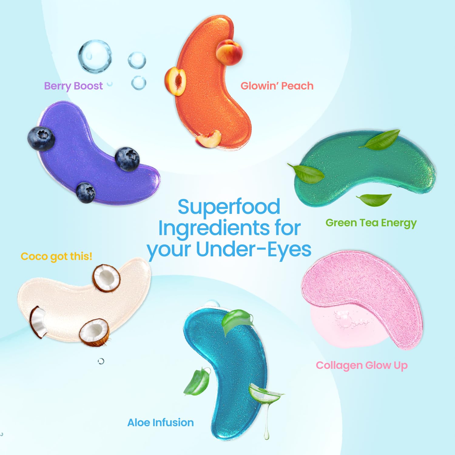 PLANTIFIQUE Superfood Under Eye Patches – 12 Pairs with Hyaluronic Acid for Dark Circles & Puffy Eyes – Anti-Aging Skincare Gel Mask, Gift for Women & Men