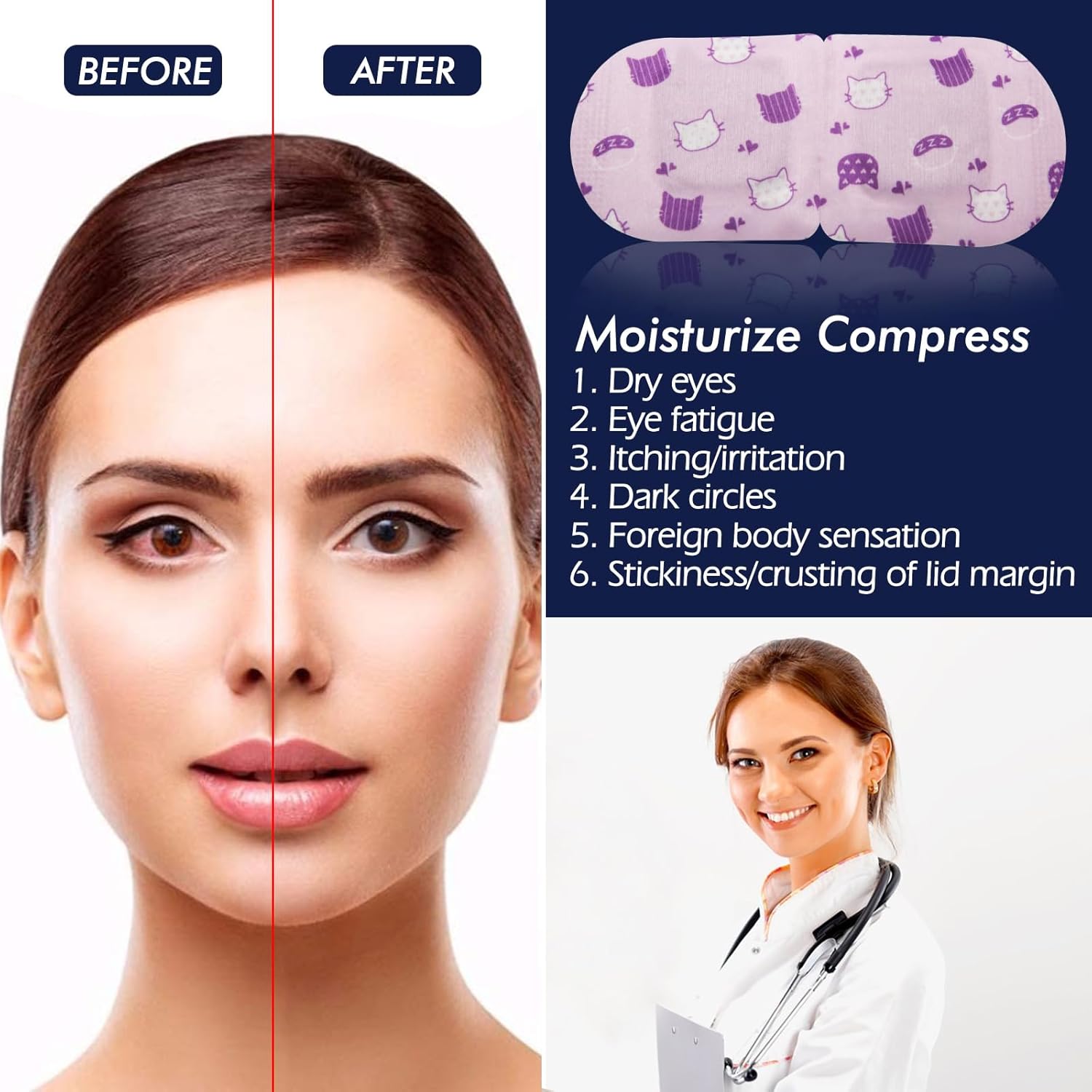 - Steam Eye Mask: Tired, dehydrated, jet-lagged, or had too much salt at dinner the night before? Our heated eye masks with a self-heating design, act as a convenient solution to tired, stressed-out eyes, dry eyes, and eye fatigue, moisturize your eyes, improve your sleep quality, and reduce dry puffy eyes and dark circles. Our dark circles under eye treatment for women make your eyes brighten while enjoying these disposable eye patches for adults