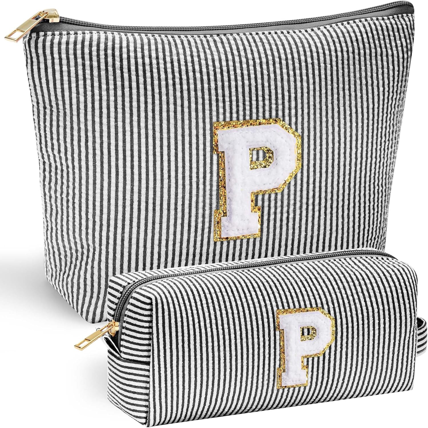 - 【Diverse Options】: The makeup bags offers pink, blue purple green black colors for you and each color have 26 letters; You can choose the color that suits you according to your personal preference and style