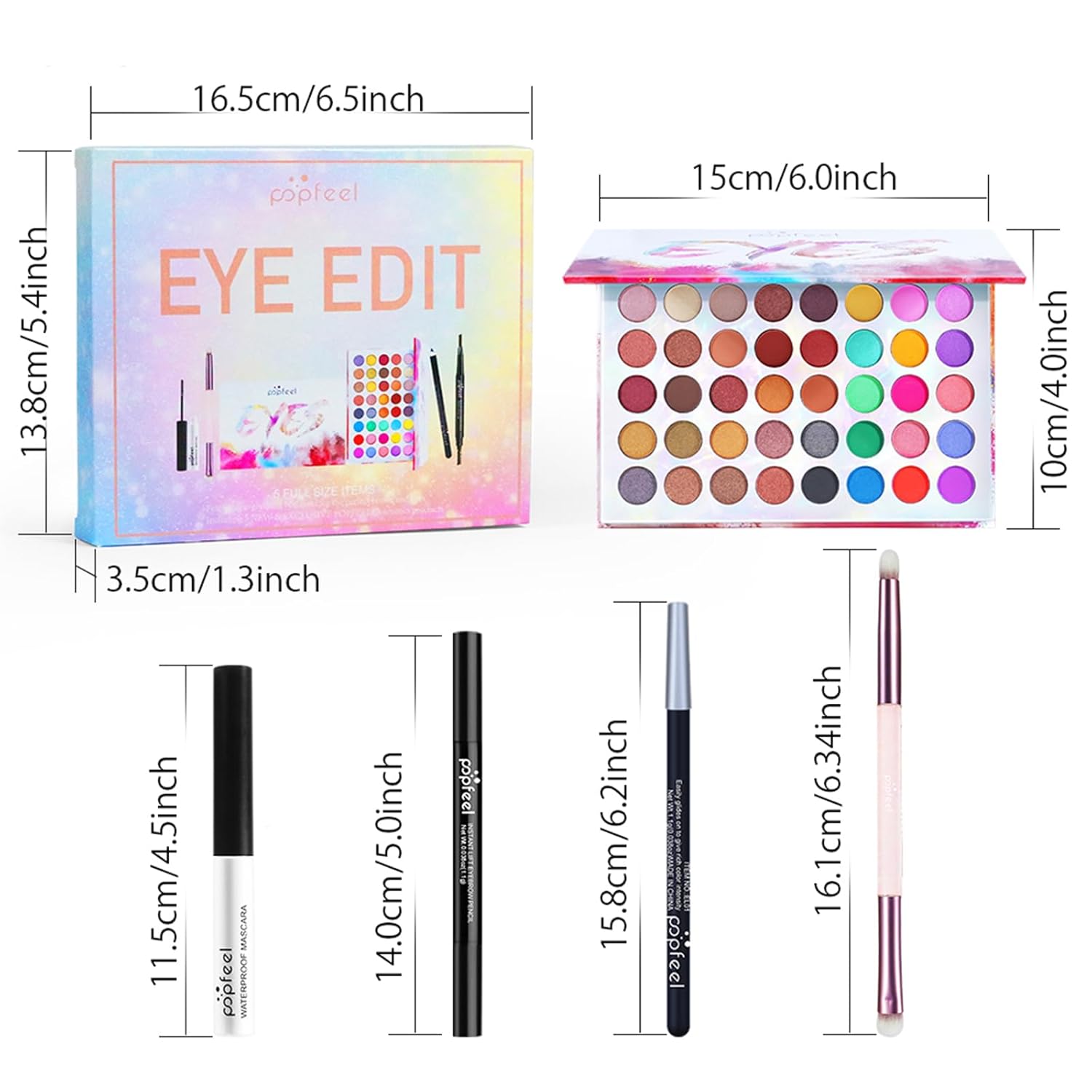 - All in One Makeup Kit - Lets you experience the super affordable of luxury beauty. This beauty set is diverse, without being too complex for a makeup novice. Include: Eyeshadow Palette, Mascara, Eyeliner, Eyeliner Pencil, Eyeshadow Brush.