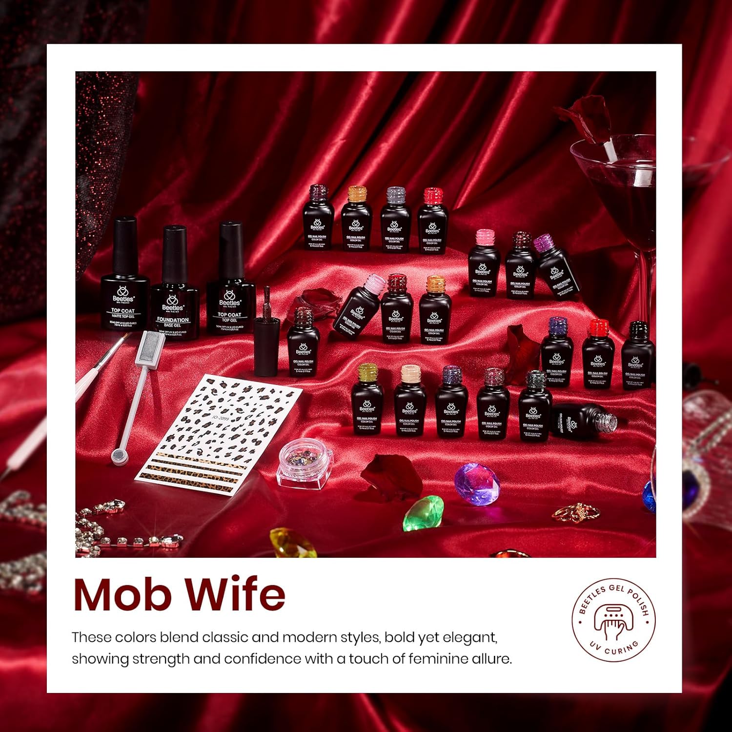 Beetles Fall Gel Polish Kit, Cat Eye Glitter 20 Colors Fall Brown Burgundy Gel Polish With Sticker Rhinestone Base Coat Glossy & Matte Top Coat Mob Wife Collection Winter Gifts for Women