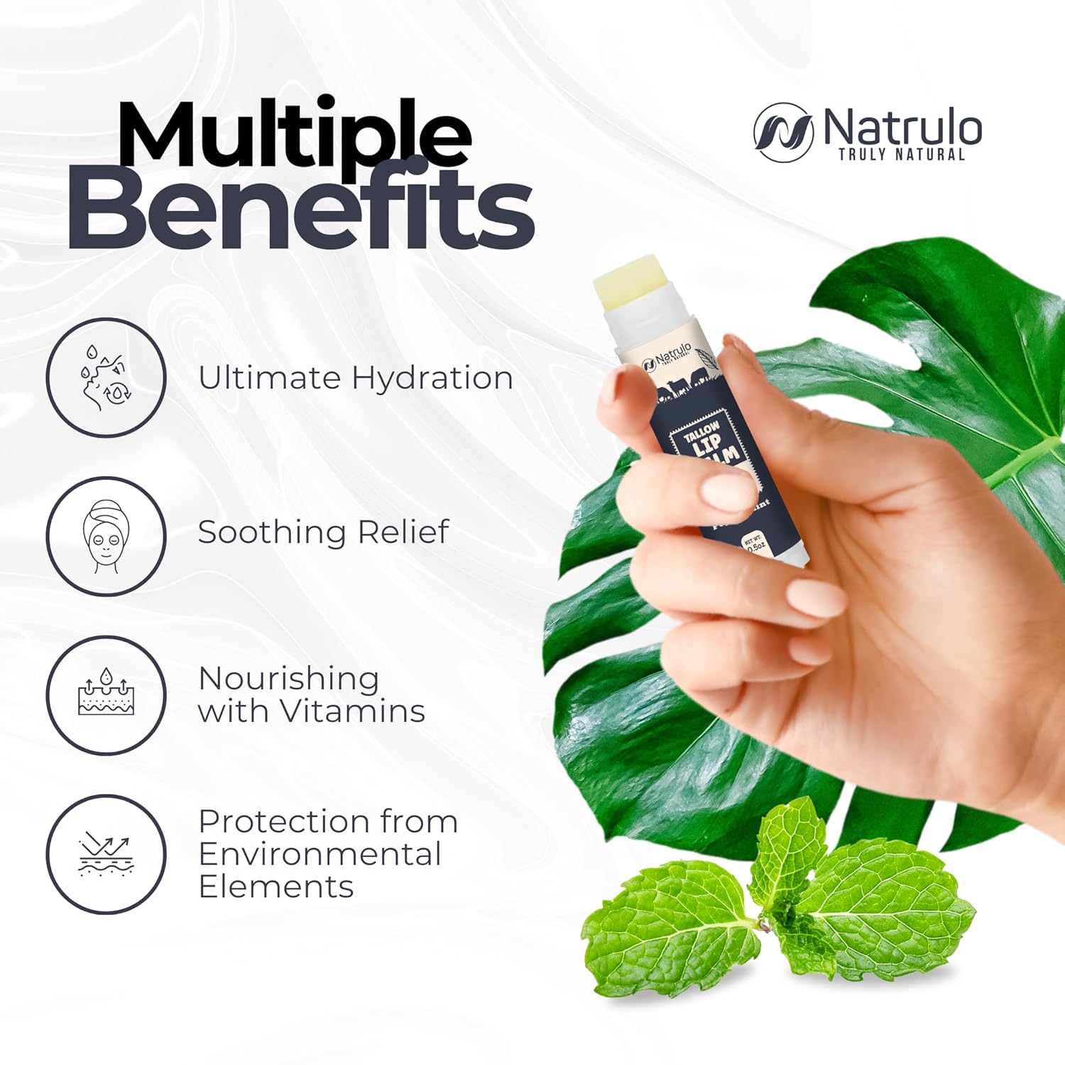 - INTENSELY HYDRATING FORMULA: Immerse your lips in moisture with our grass-fed organic beef tallow lip balm with peppermint flavor. Crafted with natural fats, akin to those in human skin, it maintains your lips' moisture barrier for enduring hydration and velvety softness.