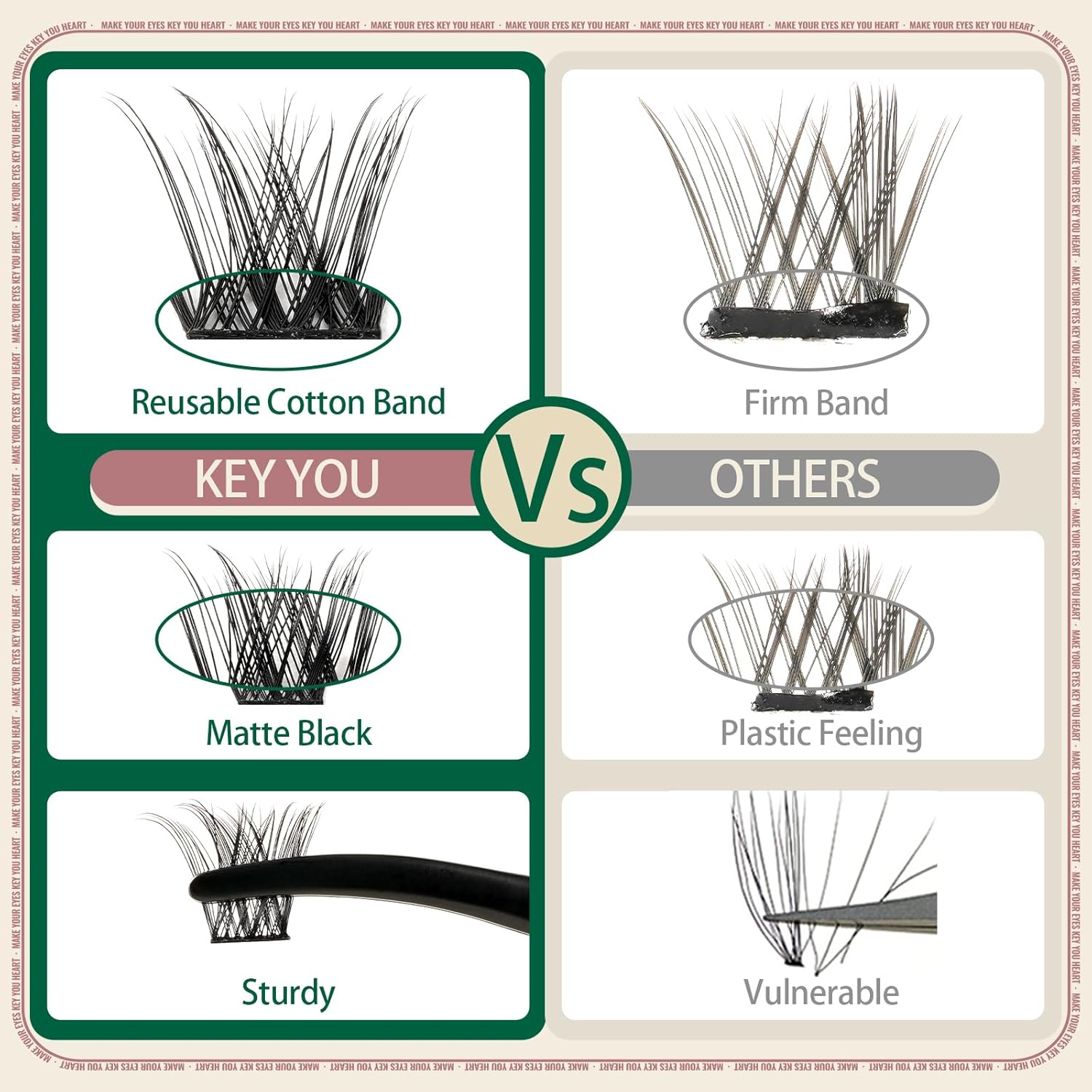 - 【High Quality Lash Clusters】Experience lightweight comfort with our soft fiber lash clusters. They're cruelty-free, irritation-free, and offer a stunning look.
