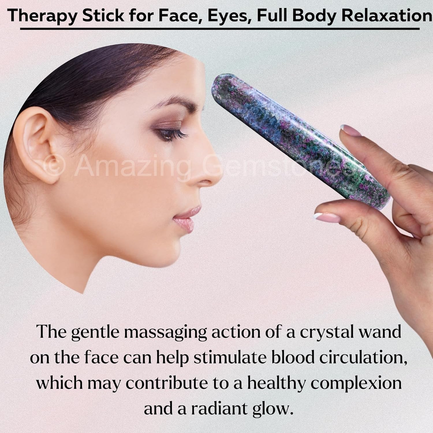 Amazing Gemstone Ruby Kyanite Crystal Wand Massage Stick - Pelvic Wand Gua Sha for Adults - Crystals and Healing Stones Massage Wands for Adults Gifts (Smooth)