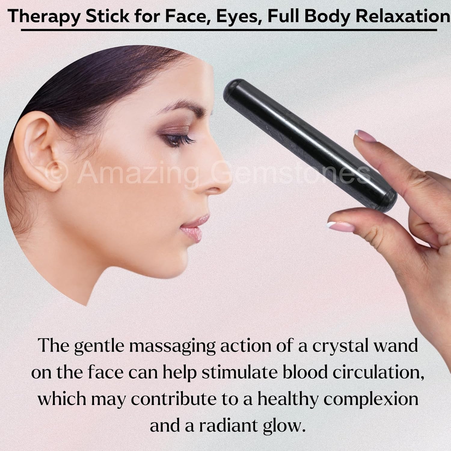 Amazing Gemstone Shungite Crystal Wand Massage Stick - Pelvic Wand Gua Sha for Adults - Crystals and Healing Stones Massage Wands for Adults Gifts (Smooth)