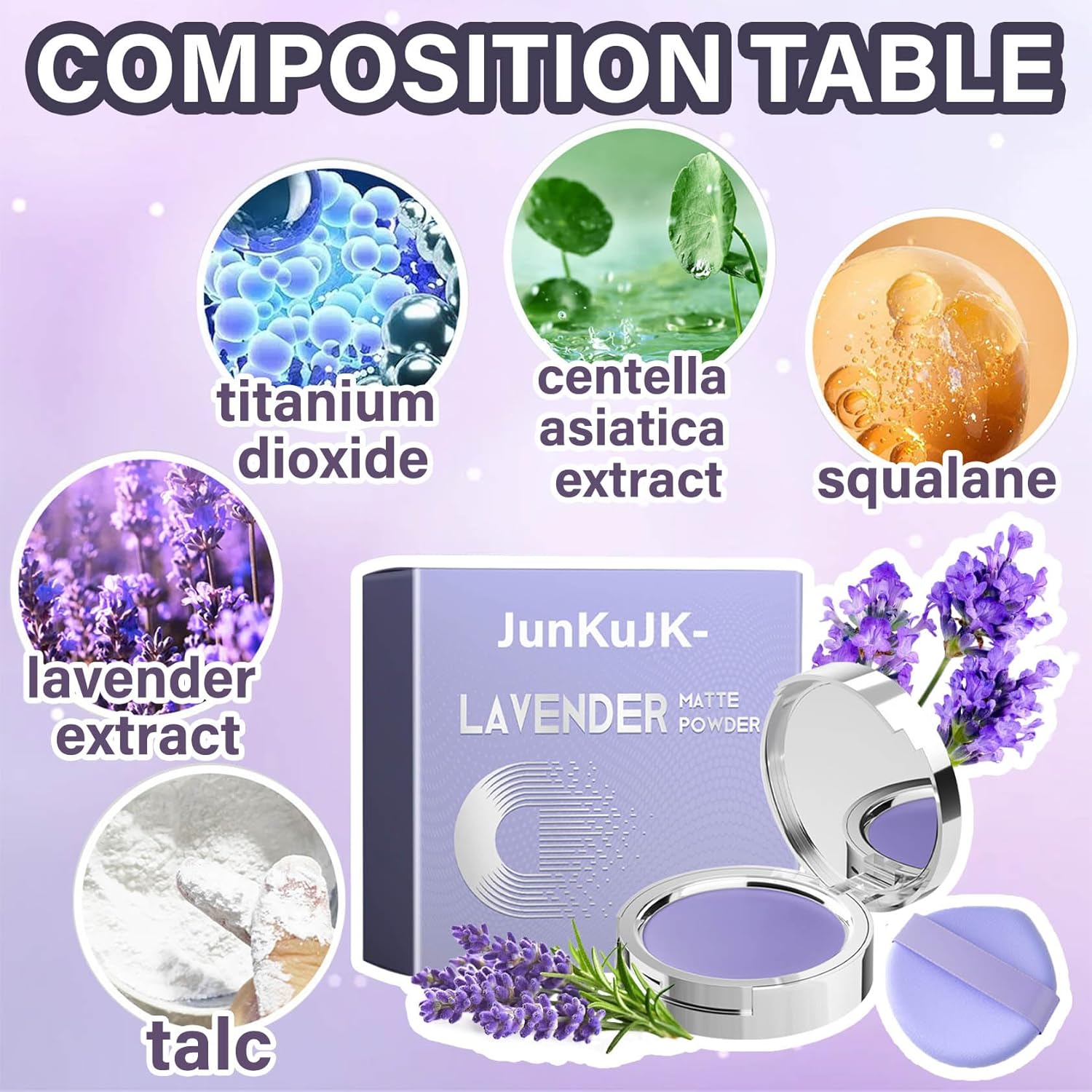 - 😽【Long-lasting Oil Control】Lavender matte powder gives you a long-lasting hold while drawing oil away from your face, giving you a matte, fresh matte finish.