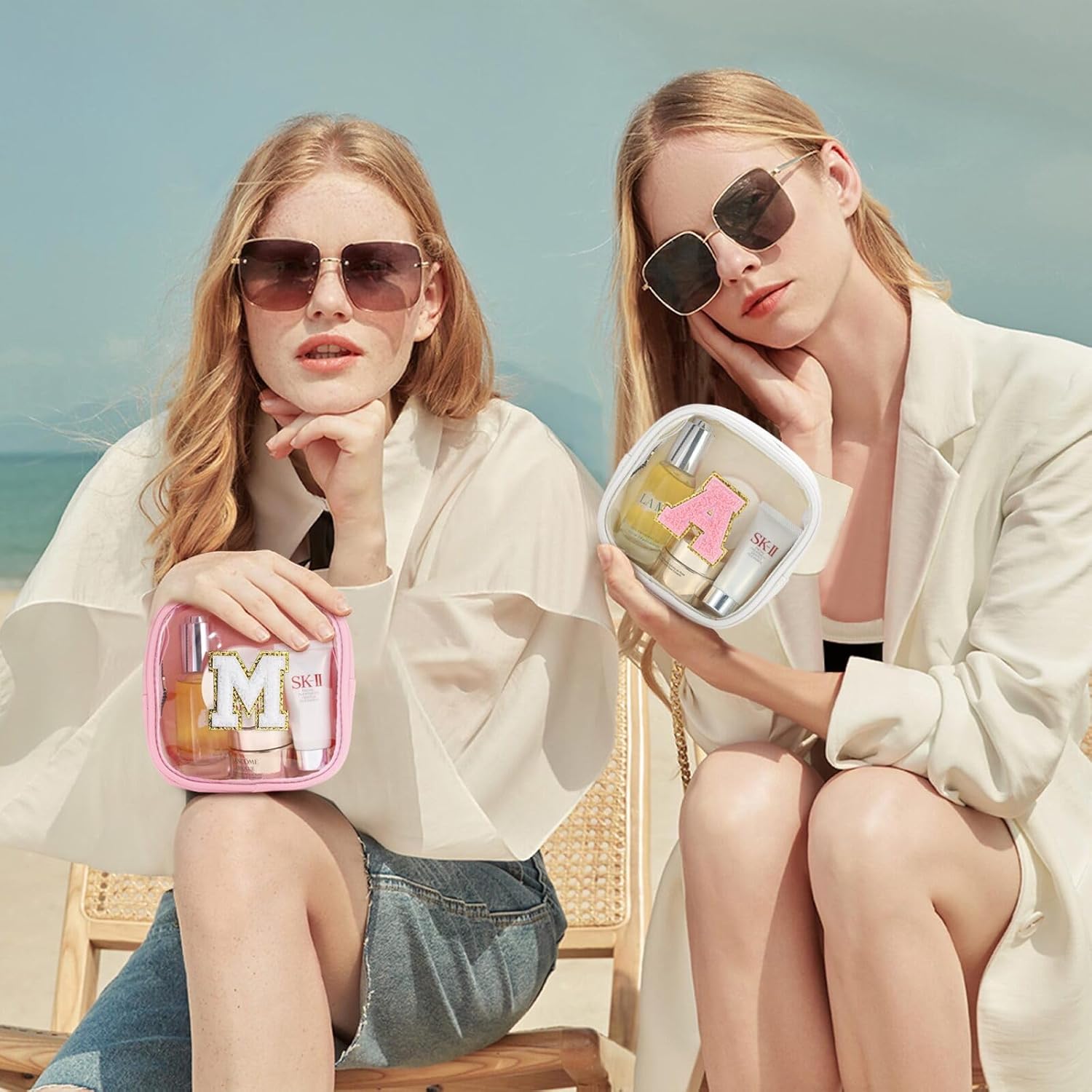 YOOLIFE Initial Make Up Bag Travel Toiletry Bag, Clear Makeup Bag Preppy Cosmetic Bags Organizer Travel Essentials Gifts for Women Teen Girlfriend Teacher Mom Birthday Mothers Day Gifts White M